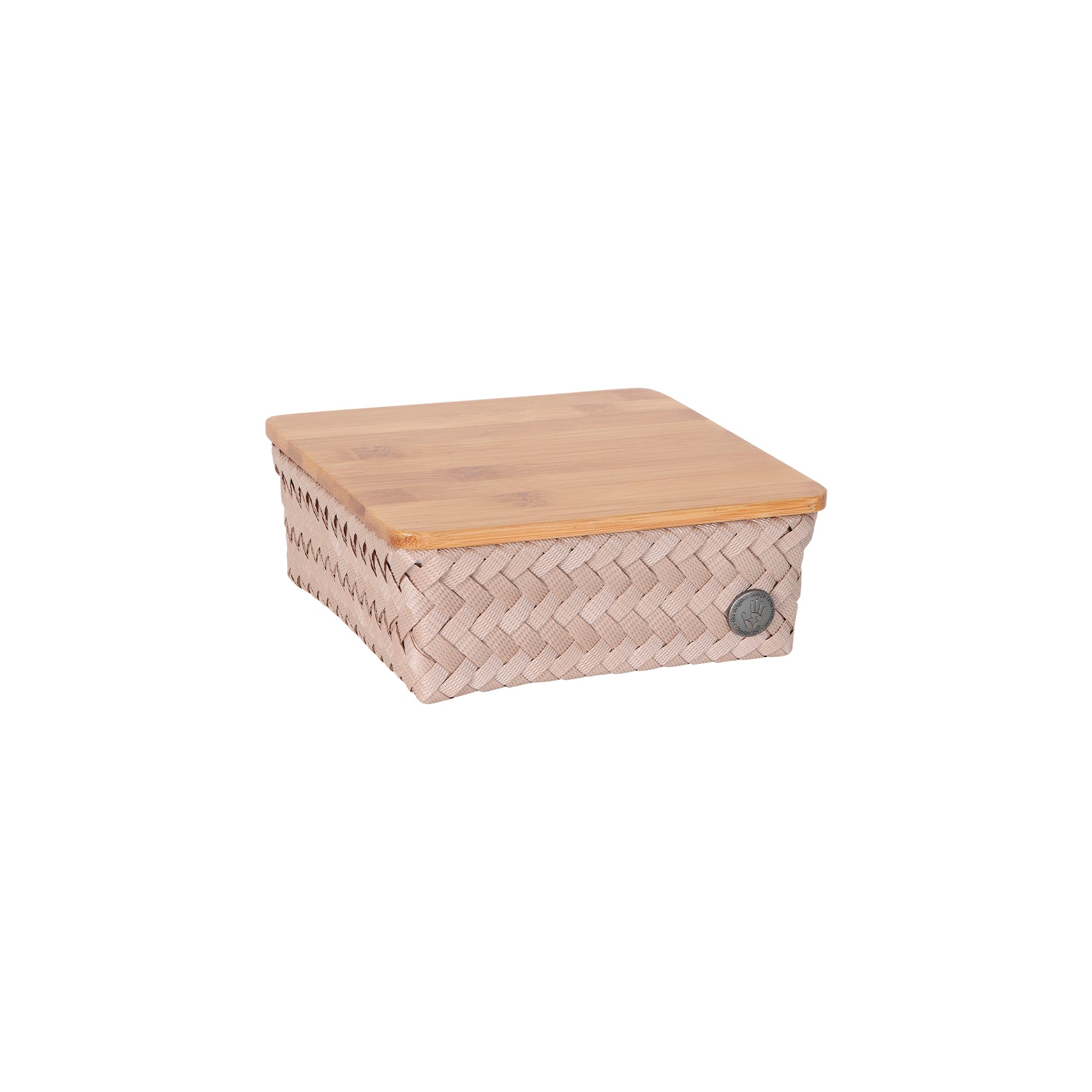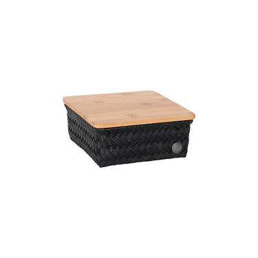 With this square basket of the TOP FIT collection by Handed By, you can use every little corner of your house. This size is perfect for storing notebooks and pens on your desk or for small jars with herbs and bottles in the kitchen. This size combines perfectly with the other FIT baskets by Handed by, inside a drawer, for instance. The lid is made of sustainable bamboo. Braided by hand and containing recycled plastic. Please note! This is one basket from the ORGANIZE FIT set. See ORGANIZE FIT for the complete set.
