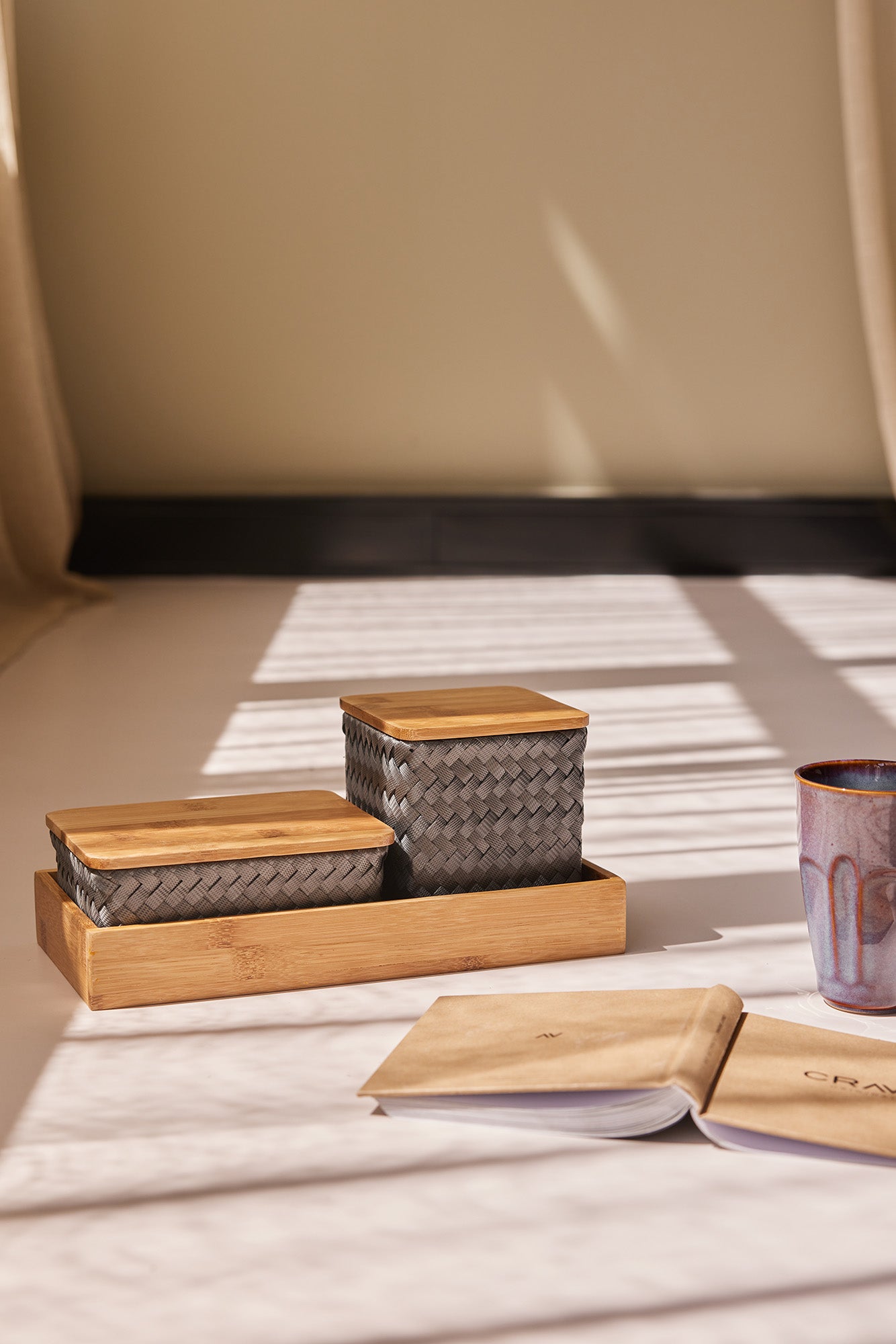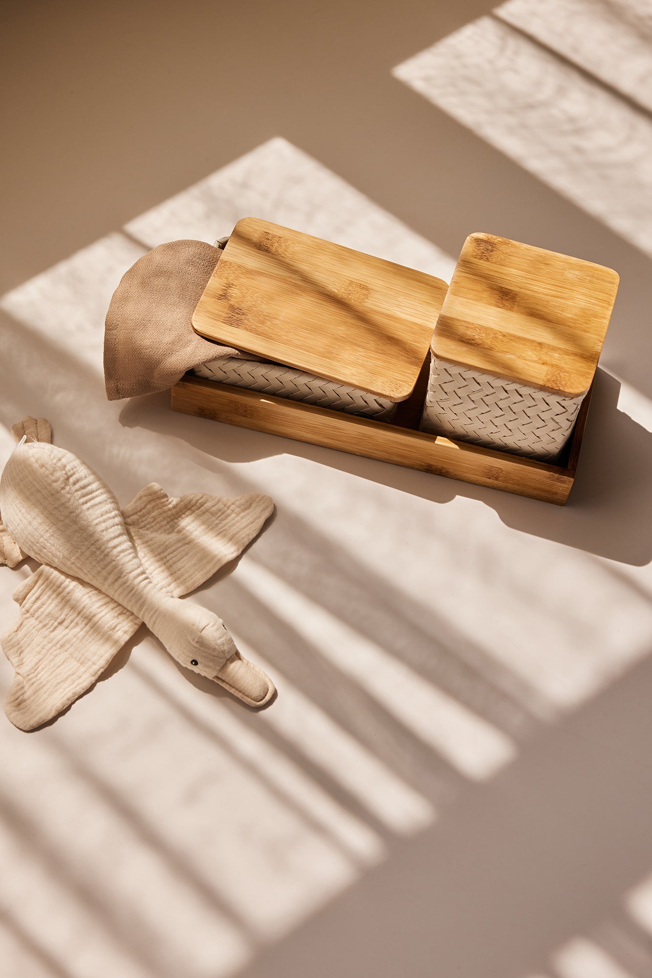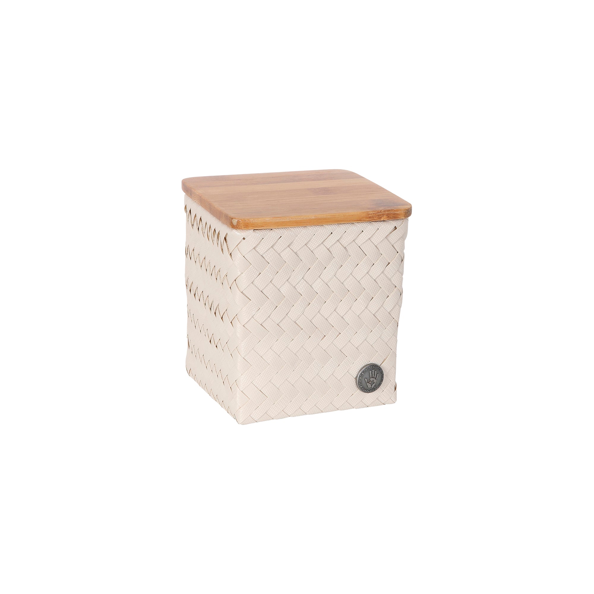 The TOP FIT tiny high storage basket by Handed By is a practical, small storage unit for the baby's room or bathroom, for example. Ideal for on the dresser, or for small items in the toilet, for example. Choose the right colour and immediately brighten up your interior! The basket is practical and stylish, and it has a bamboo lid. Hand-made with recycled plastic. Please note! This is one basket from the ORGANIZE FIT set. See ORGANIZE FIT for the complete set.