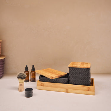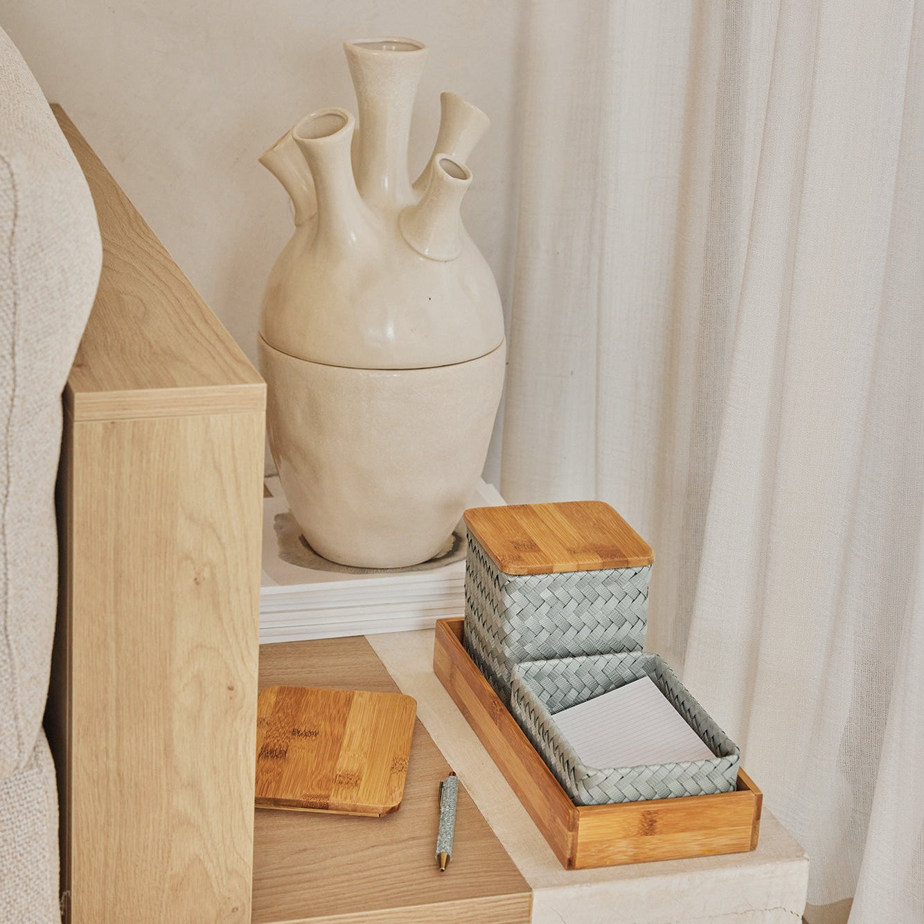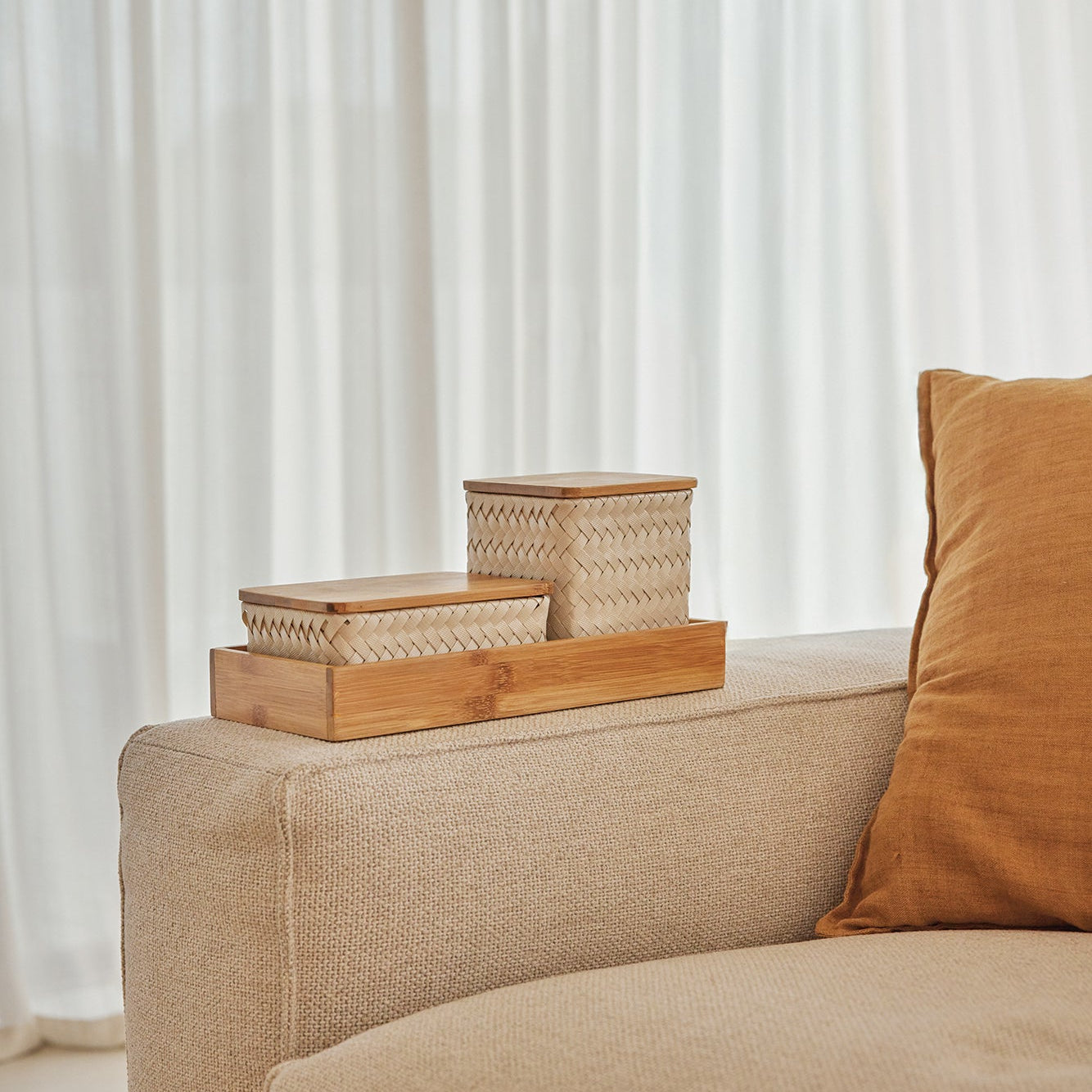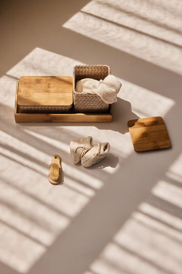 The TOP FIT tiny high storage basket by Handed By is a practical, small storage unit for the baby's room or bathroom, for example. Ideal for on the dresser, or for small items in the toilet, for example. Choose the right colour and immediately brighten up your interior! The basket is practical and stylish, and it has a bamboo lid. Hand-made with recycled plastic. Please note! This is one basket from the ORGANIZE FIT set. See ORGANIZE FIT for the complete set.