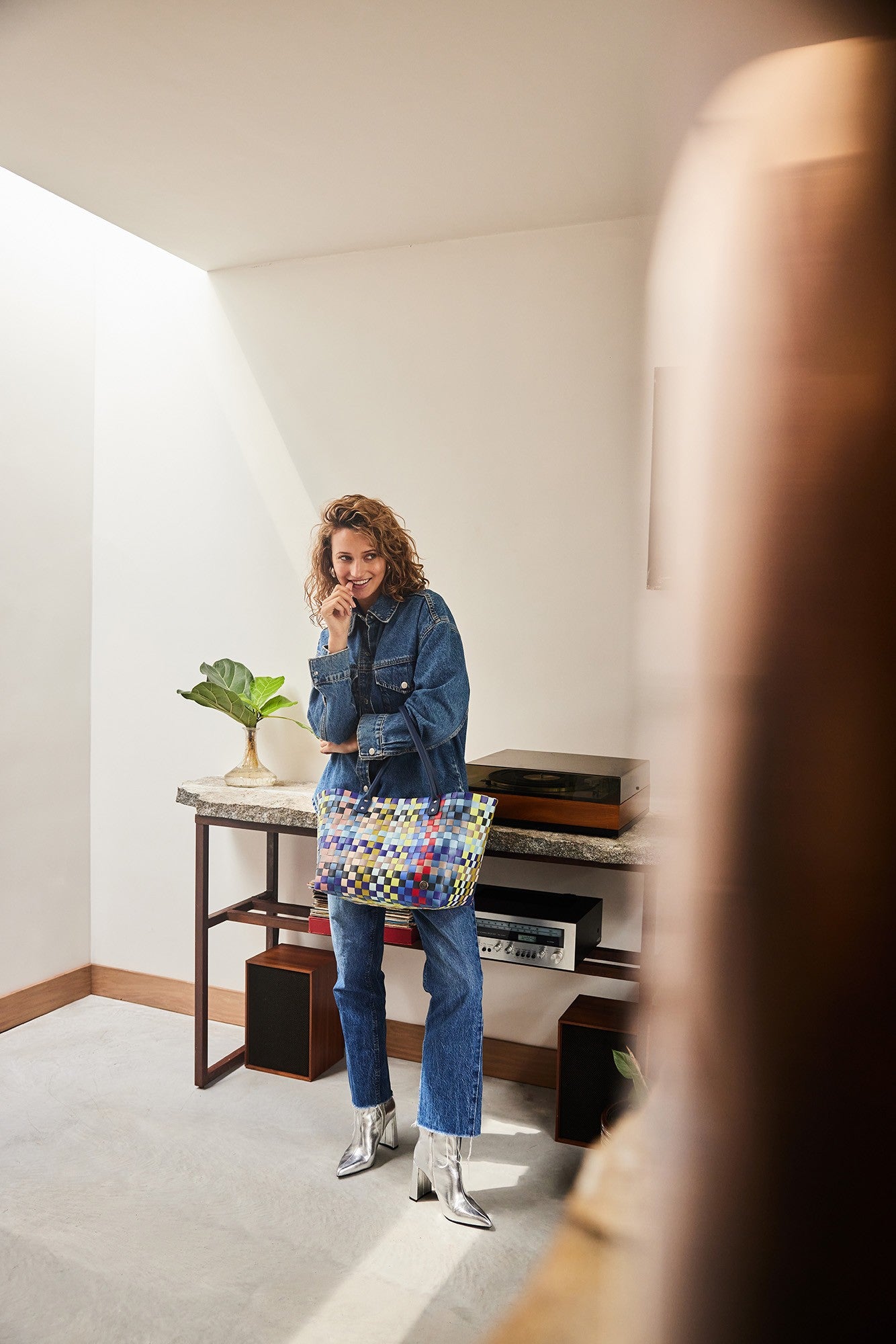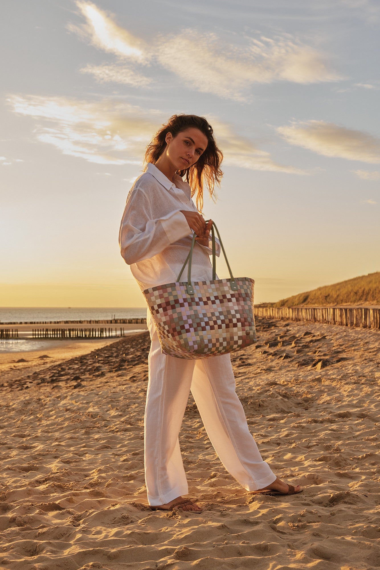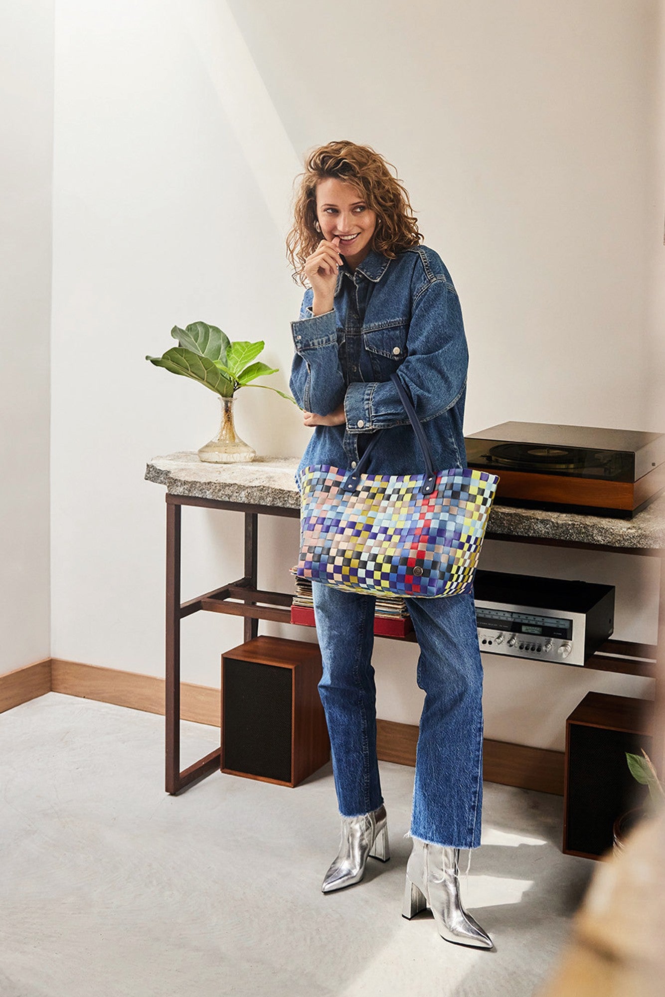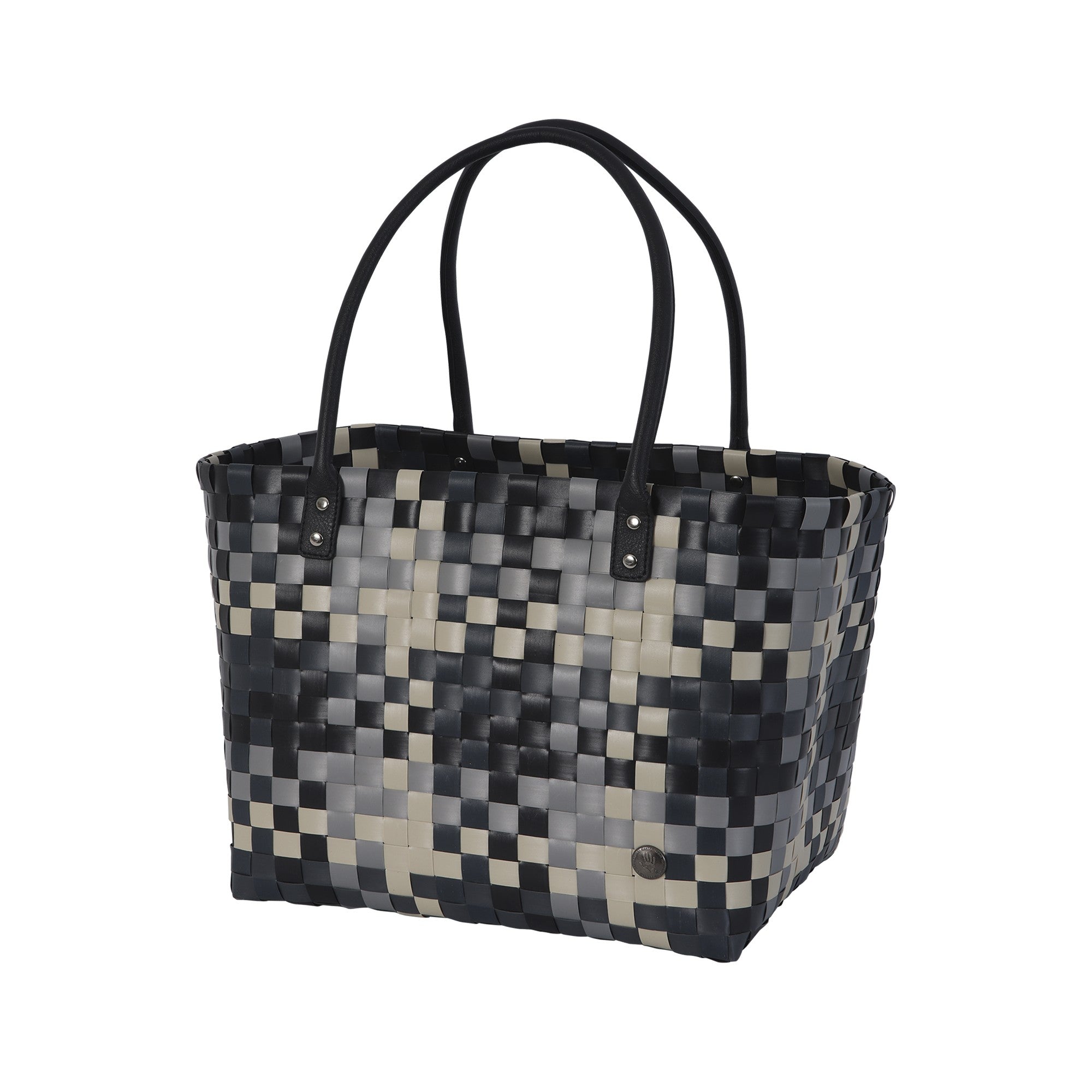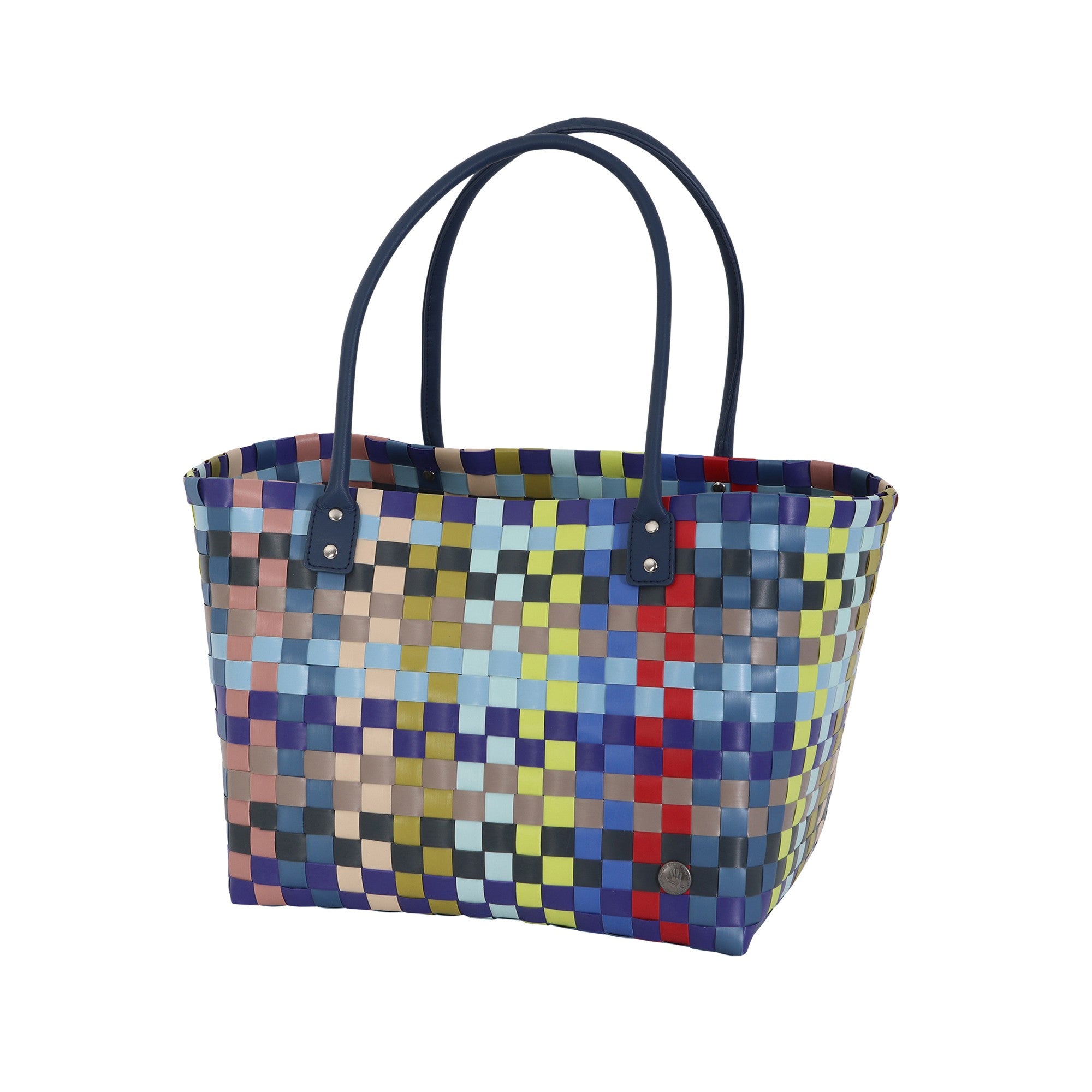 With its beautiful mix of colours, the sturdy Mingle bag adds a special touch to every outfit! Its dynamic pattern and dark handles are a perfect match. It’s the perfect bag for the beach, the sauna or a weekend away. The Mingle is comfortable to use, whether carrying it by its handles or slung across your shoulder. Hand-made from recycled plastic.