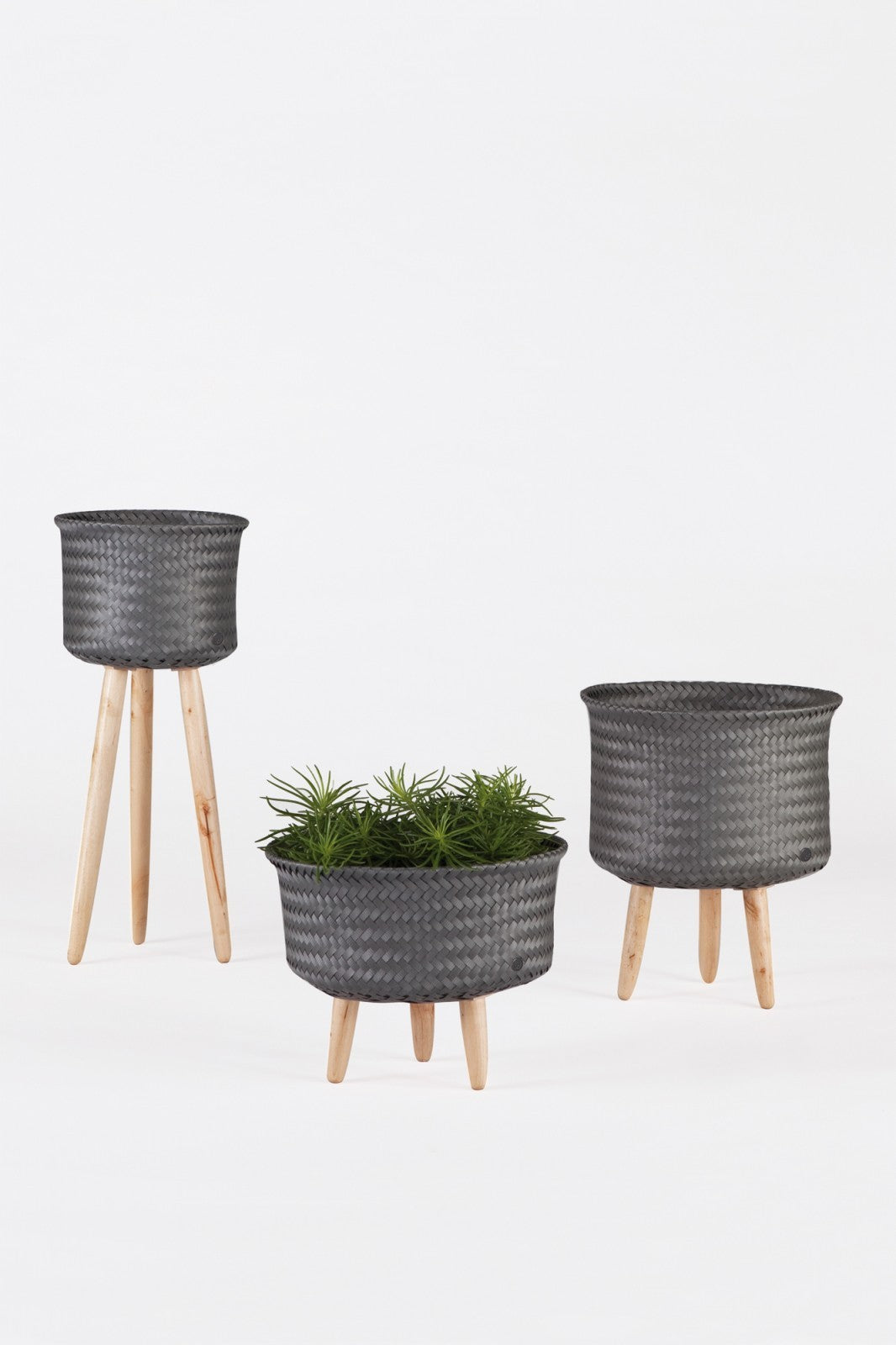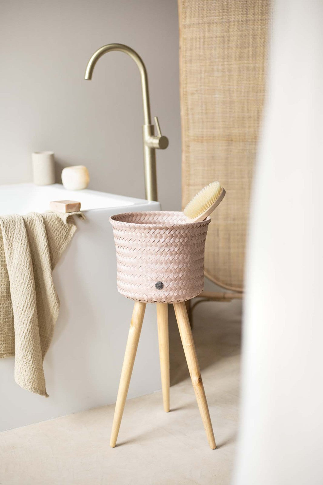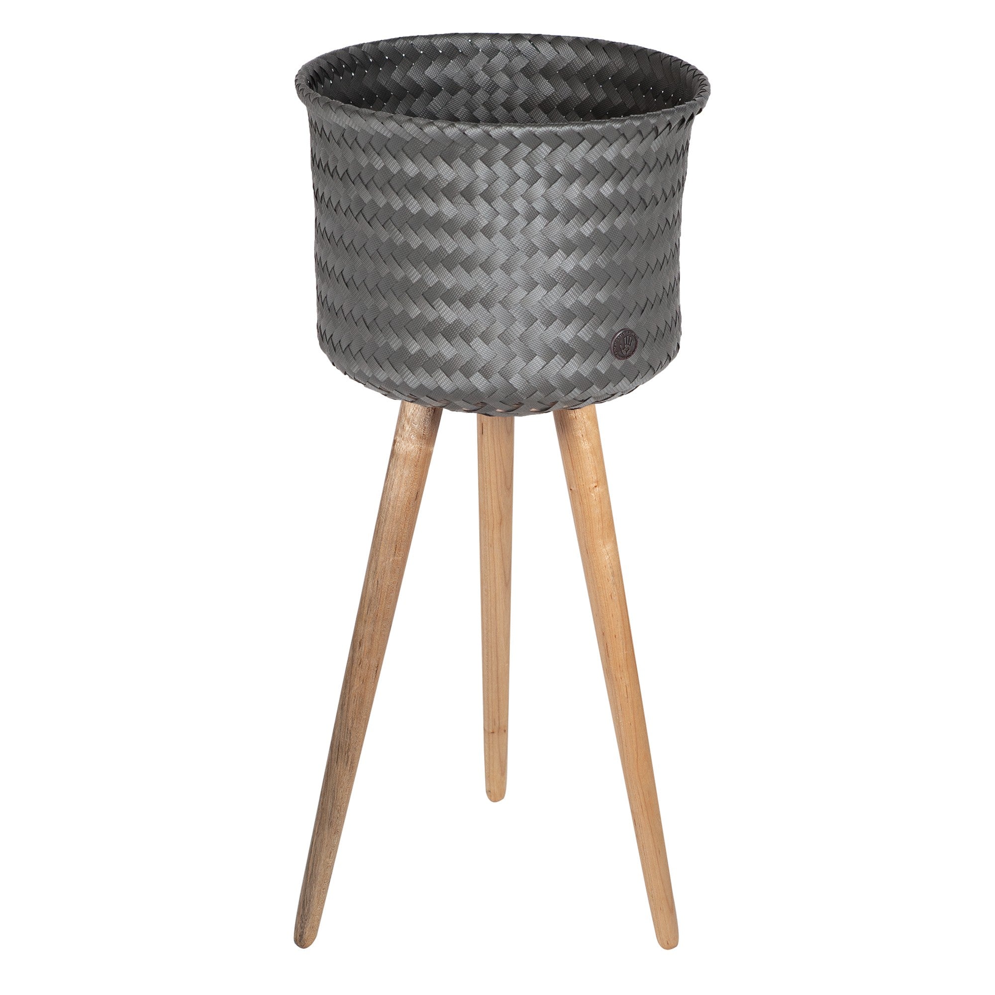 The Up High plant basket from the Up collection from Handed By puts your plants in the spotlight. The handmade basket is attached to three feet, made of environmentally friendly cinnamon wood. Combine it with the other sizes and colours from the Up collection for a cool, botanical ambiance! Use it for a big cactus or plant and put it in a prominent place in the living room or kitchen. Braided by hand and containing recycled plastic.