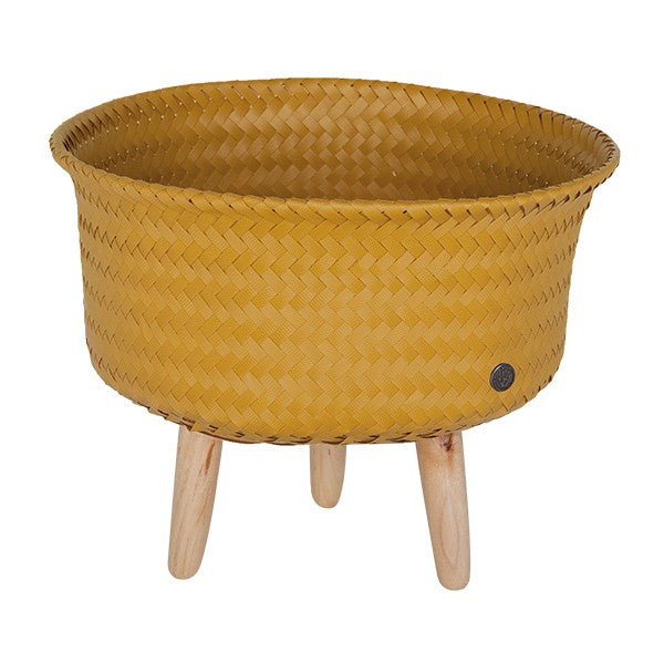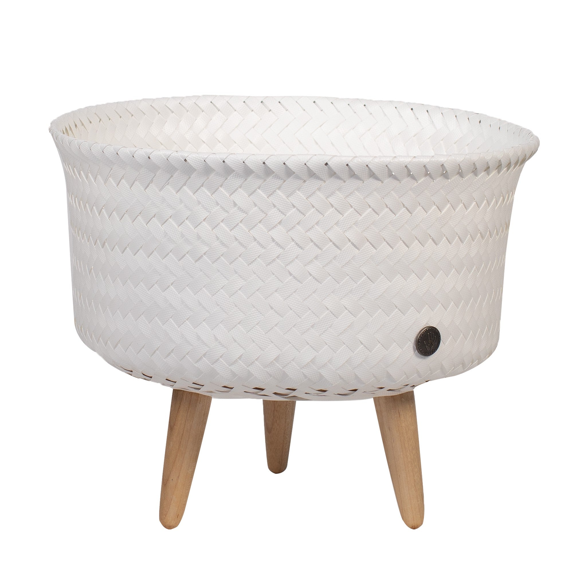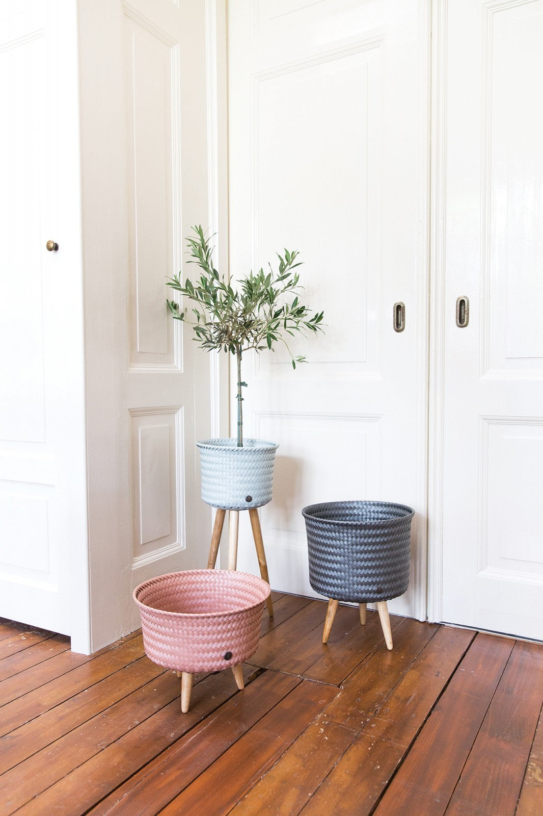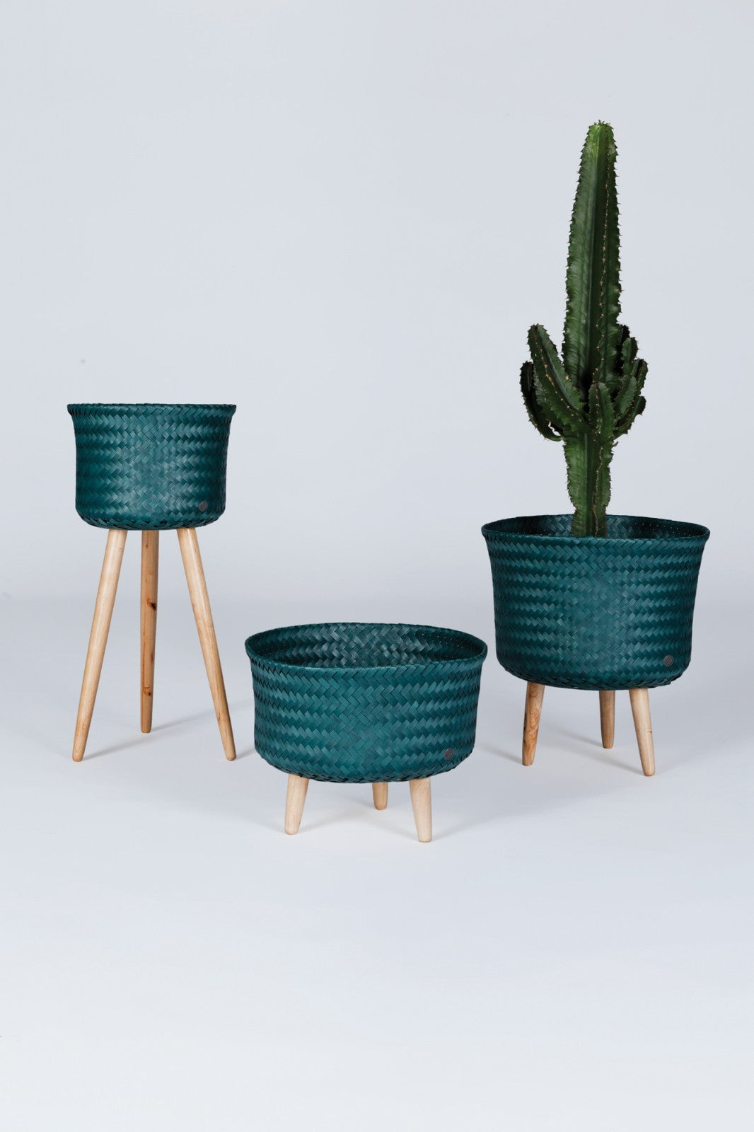 The Up Low plant basket from the Up collection from Handed By puts your plants in the spotlight. The handmade basket is attached to three feet, made of environmentally friendly cinnamon wood. Combine it with the other sizes and colours from the Up collection for a cool, botanical ambiance! Use it for a big cactus or plant and put it in a prominent place in the living room or kitchen. Braided by hand and containing recycled plastic.