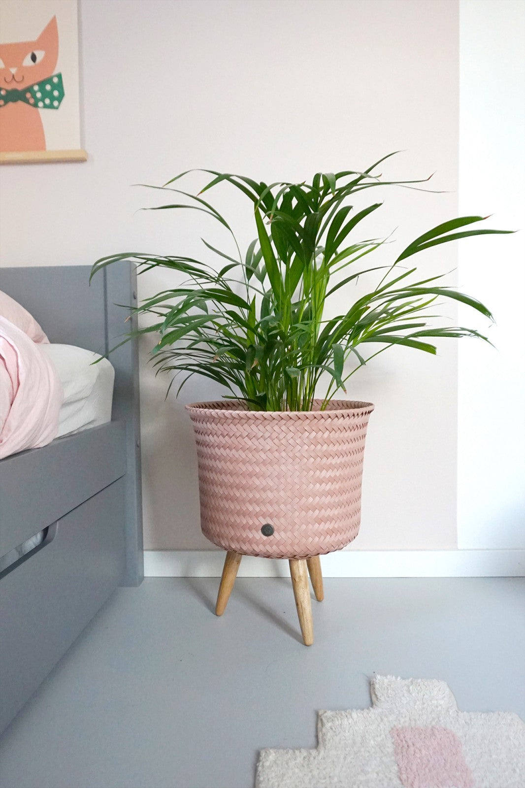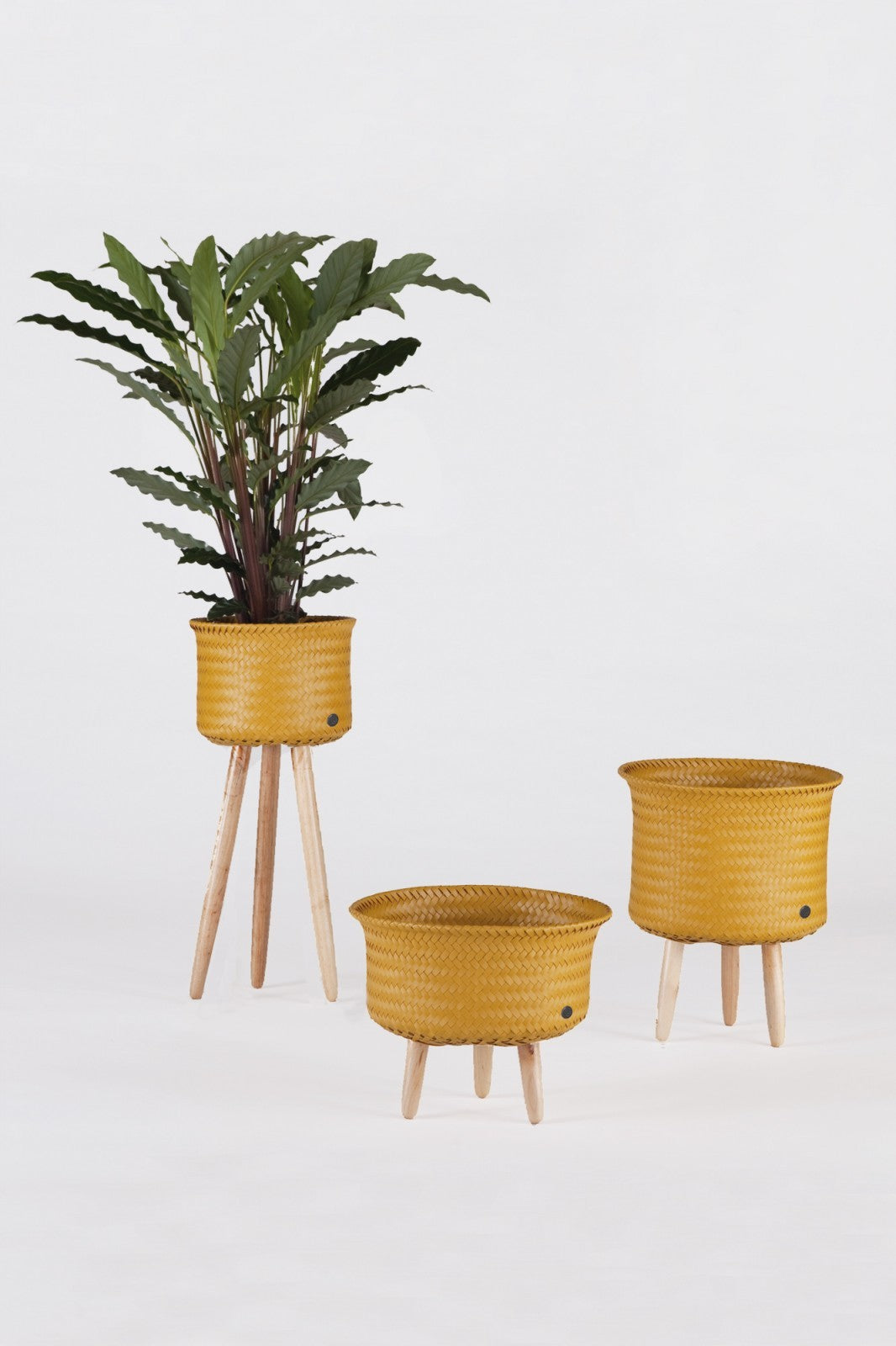 The Up Mid plant basket from the Up collection from Handed By puts your plants in the spotlight. The handmade basket is attached to three feet, made of environmentally friendly cinnamon wood. Combine it with the other sizes and colours from the Up collection for a cool, botanical ambiance! Use it for a big cactus or plant and put it in a prominent place in the living room or kitchen. Braided by hand and containing recycled plastic.