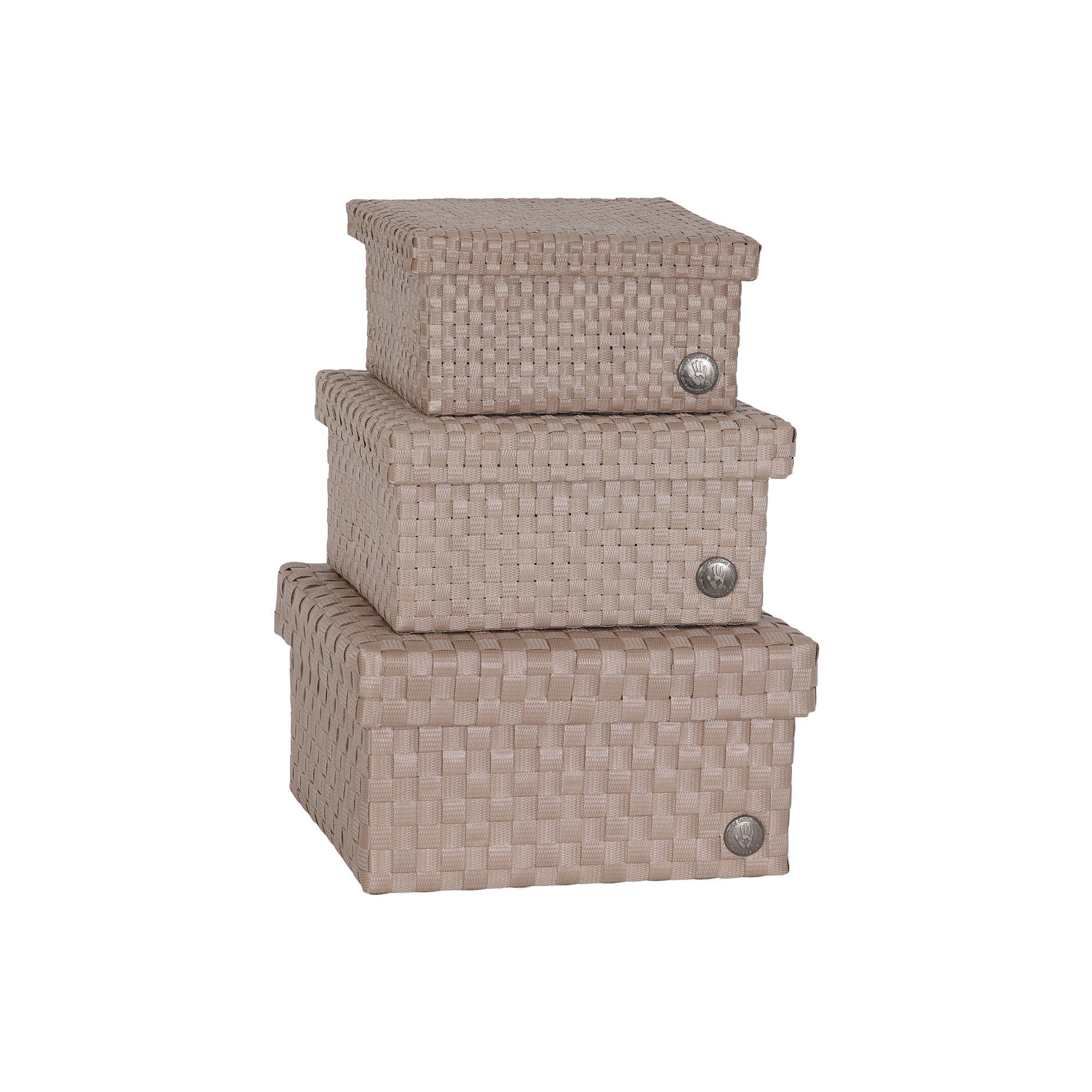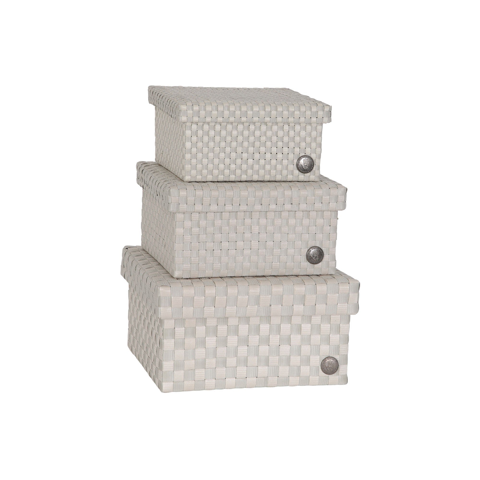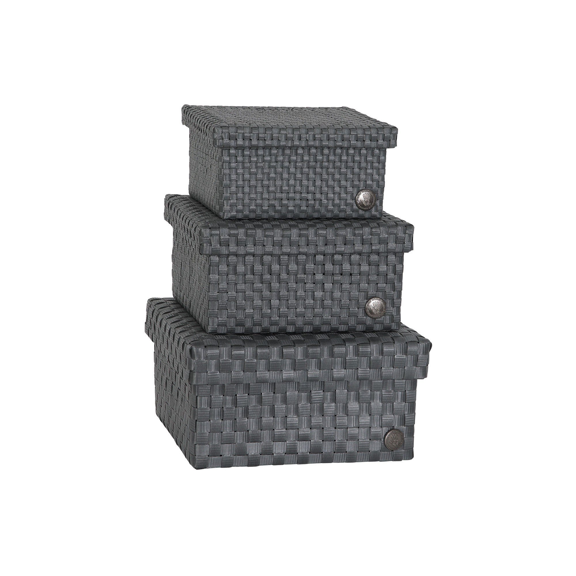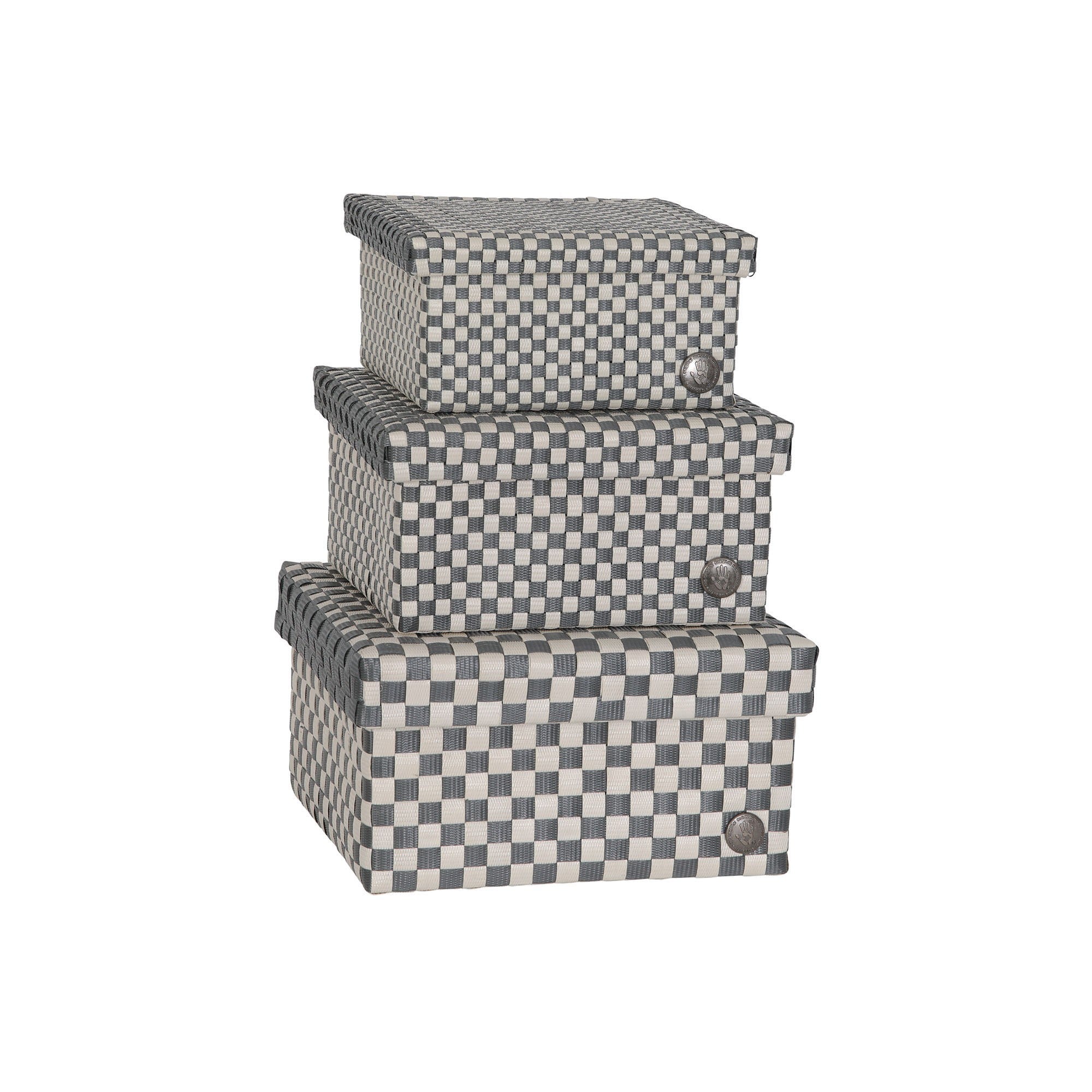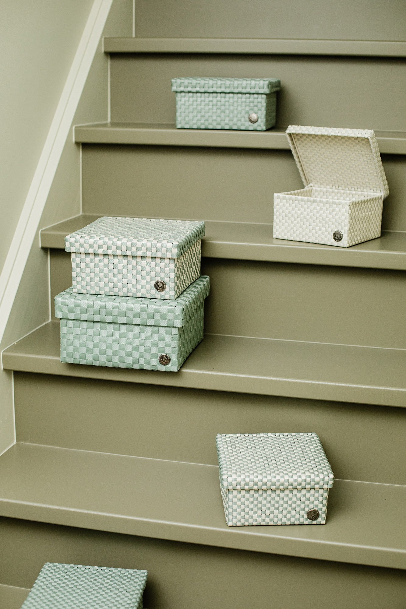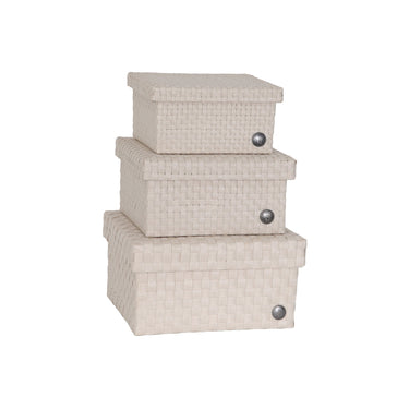 "Discover the new CUBE collection: a set of three handwoven baskets in sizes S, M, and L. Each basket has a square shape and comes with a practical flap lid, keeping your items organized and neatly out of sight. The baskets are woven with extra-fine straps, creating a beautiful, subtle block pattern. Available in a range of calm solid colours and soft colour mixes that enhance the craftsmanship of the weave. Perfect for any room in the home, from bathrooms and kitchens to living rooms and kid's room. "
