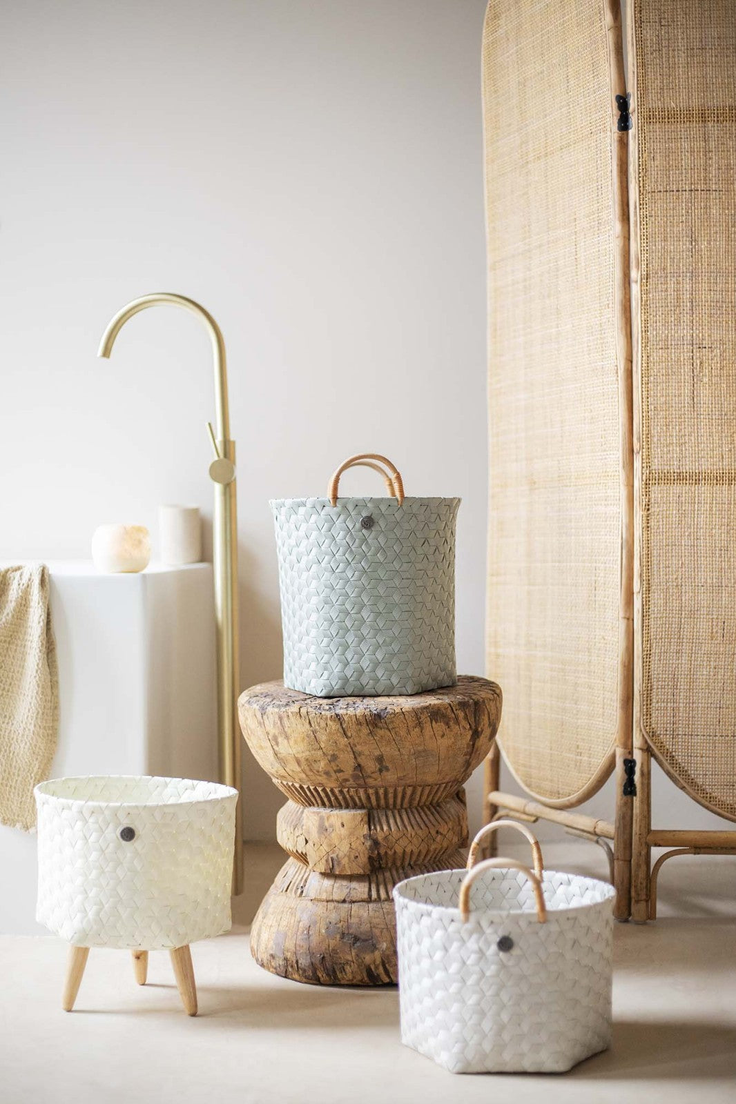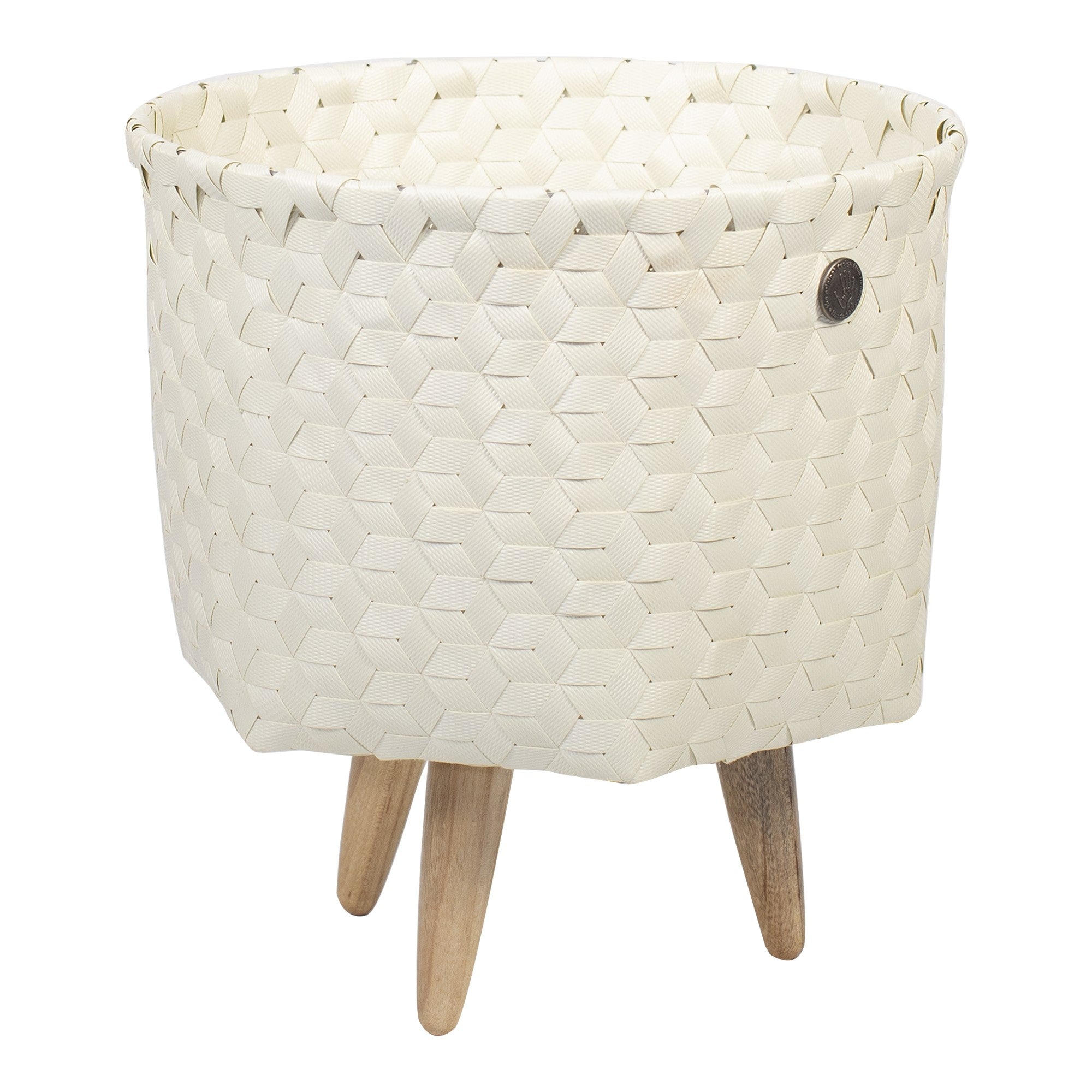 Size S of the 'Dimensional Feet' collection is an ideal storage place in every living or child's room. Use it as a giftbasket, plantbasket or as a storagebasket for toys and other stuff. The wooden feet put the basket in the spotlights. These feet are made of environmentally friendly cinnamon wood. Trendy and practical! 'Dimensional Small Feet' is also available without feet and in a version with rattan handles. Braided by hand using recycled plastic.