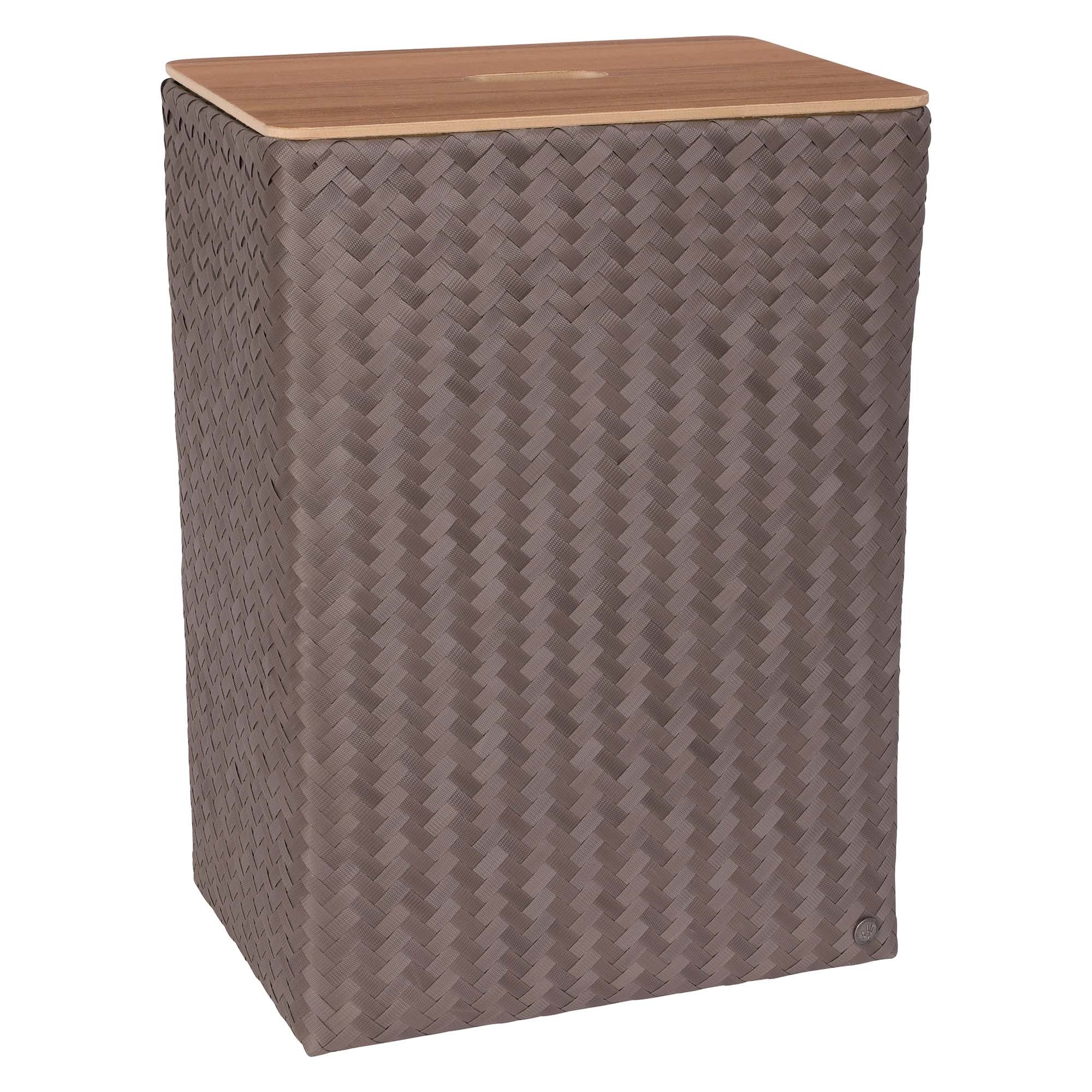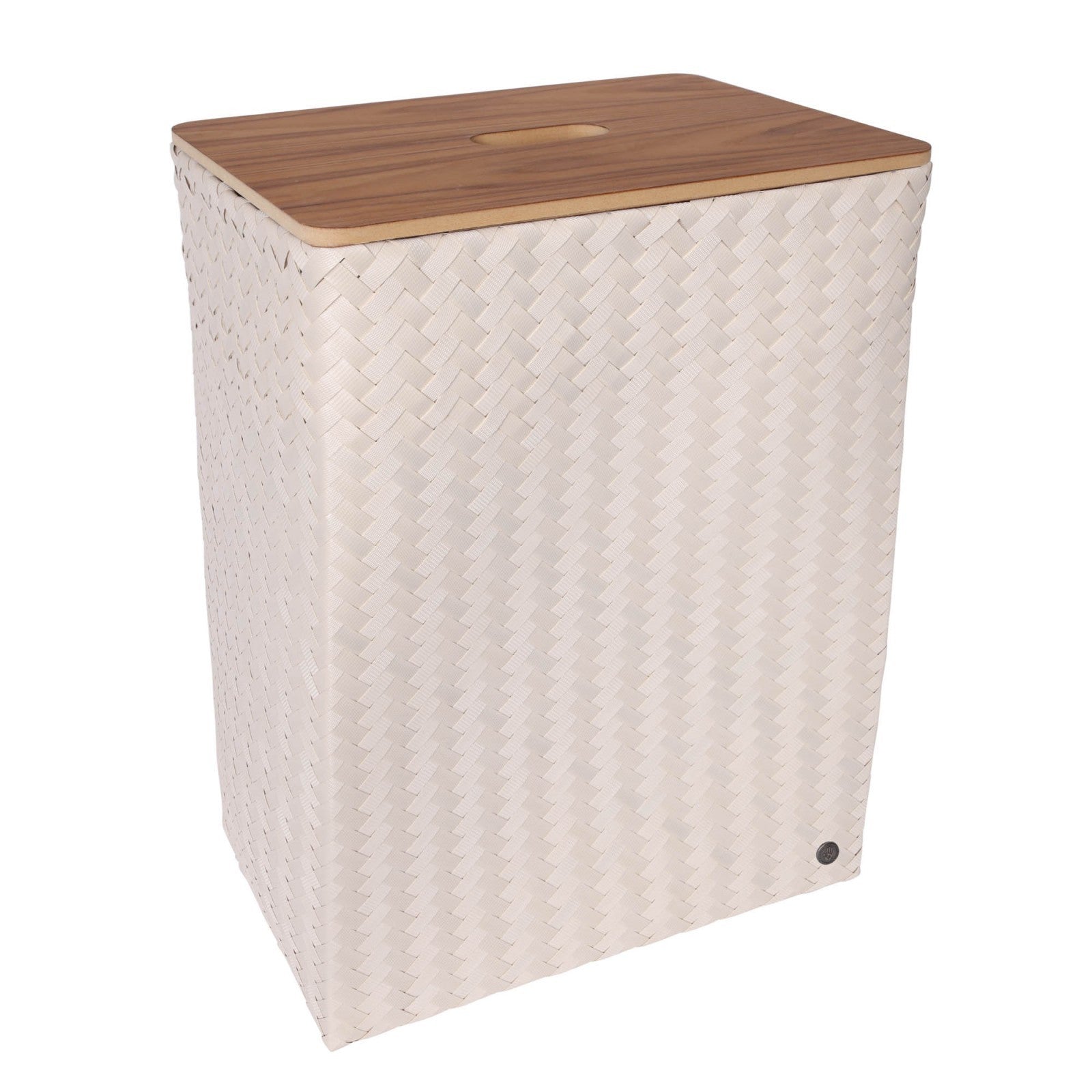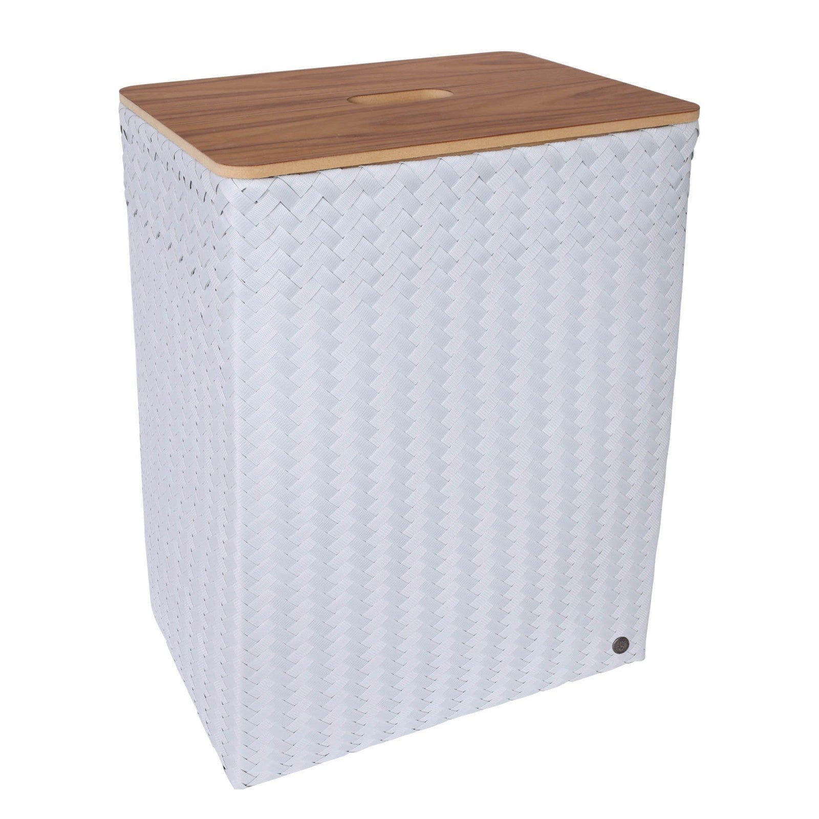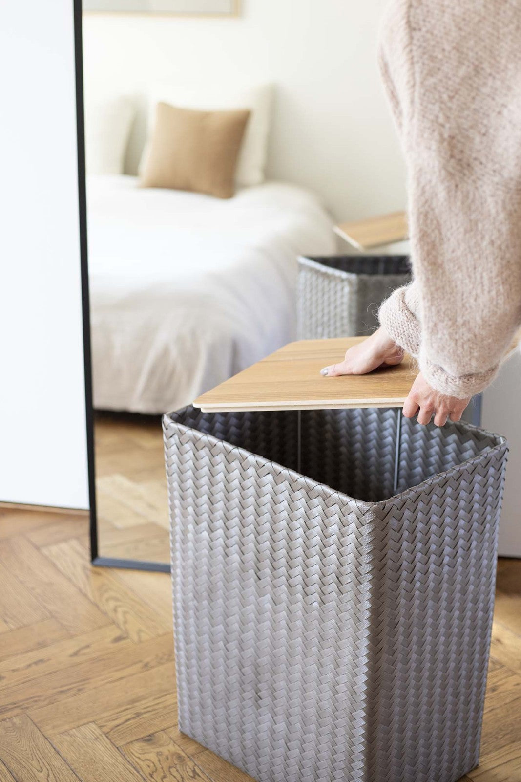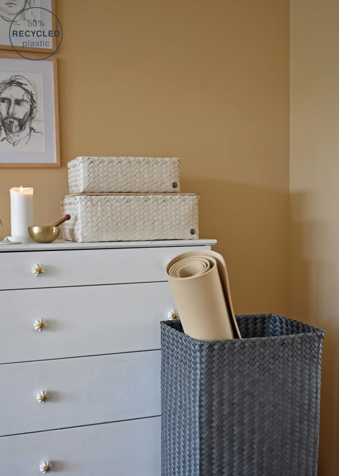 The biggest basket of the Grand collection from Handed By, the 'Grand superb'. A stylish laundry basket with a wooden lid. Also great to use in your hallway, for umbrellas, gloves and scarves. With the wooden lid, everything can be stored neatly out of sight. Life hack: put two different colours next to each other, to separate your dark laundry from your white laundry! The whole collection is hand-woven and made with recycled plastic.