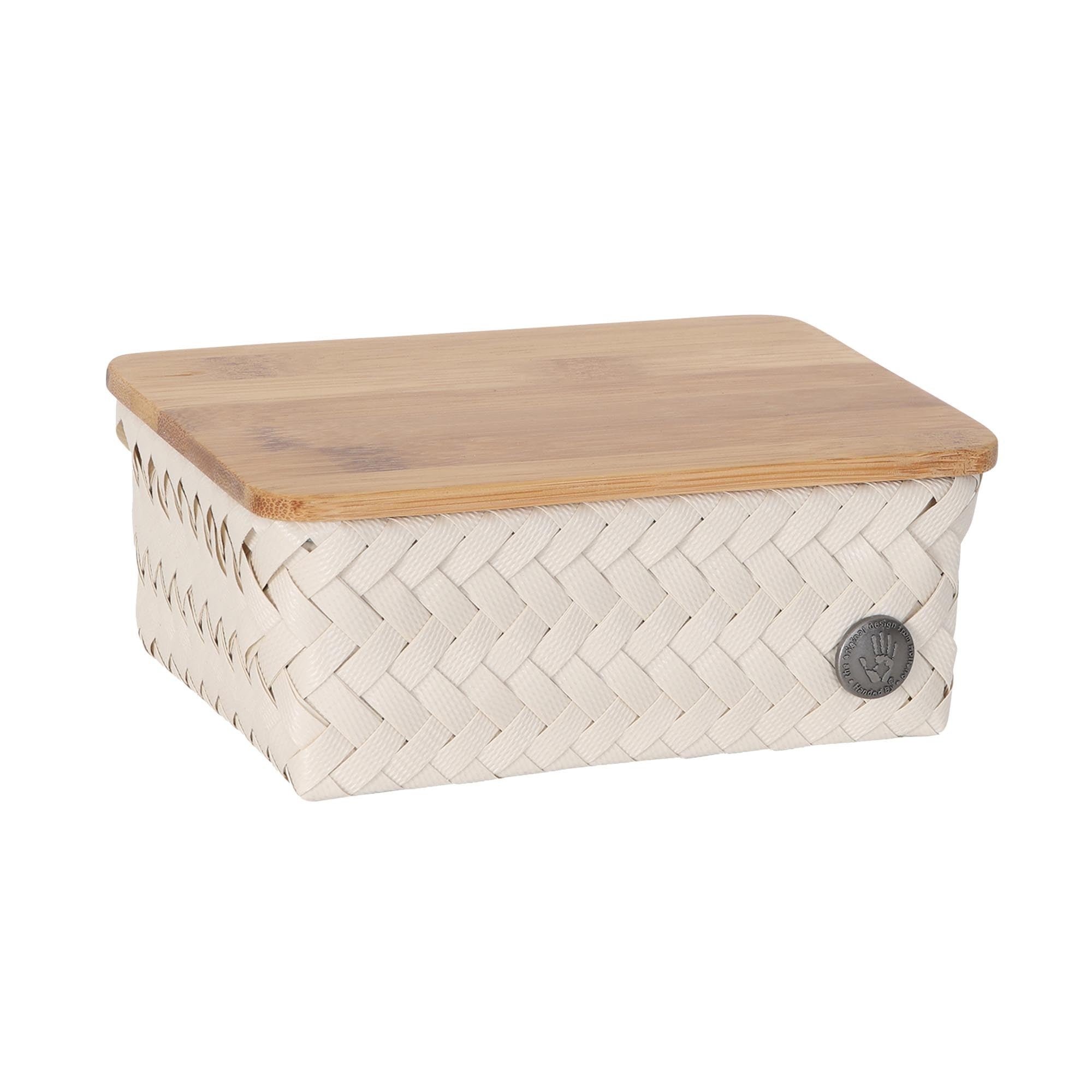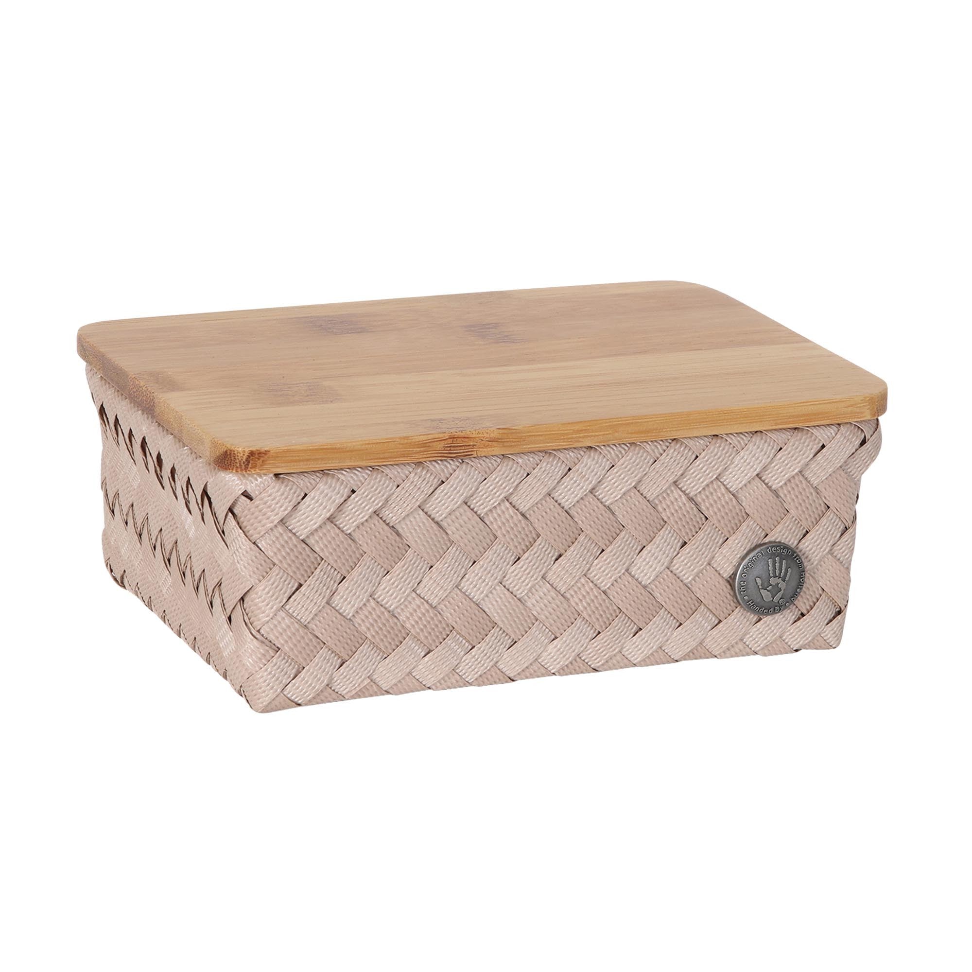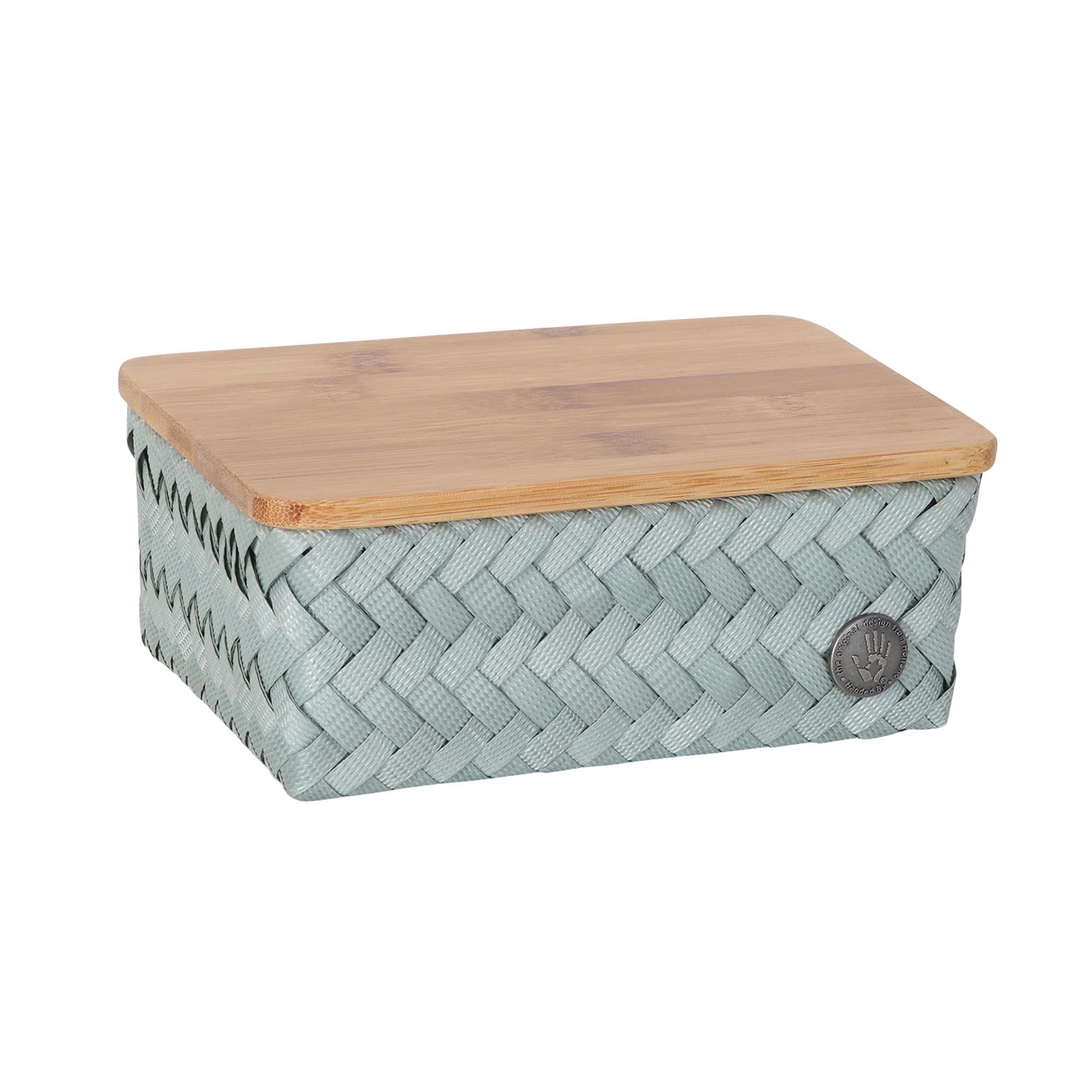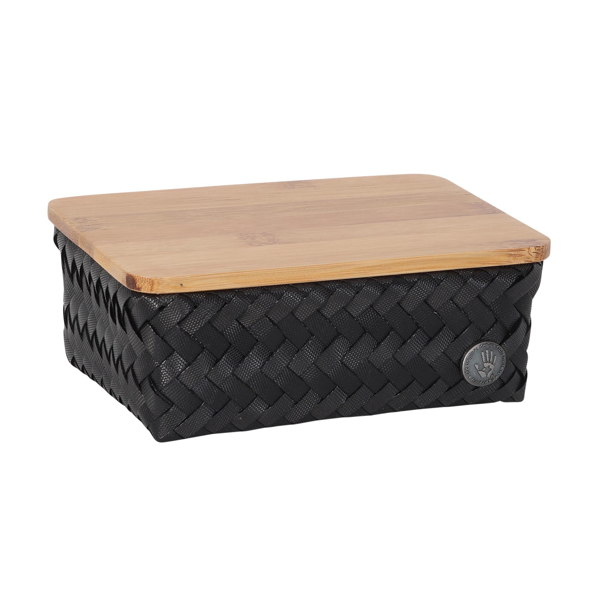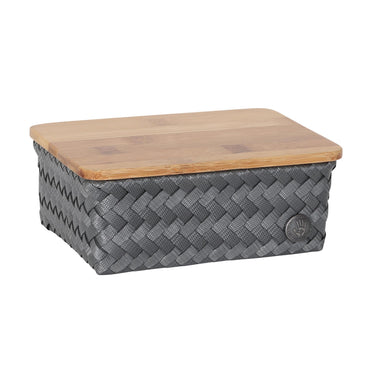 La taille du panier de rangement TOP FIT small est très pratique pour n’importe quelle pièce de la maison. Sur le comptoir notamment, rempli de noix ou de fruits ou, par exemple, comme rangement pour vos blocs-notes sur le bureau. Le couvercle est fabriqué en bambou, un matériau durable. Tressée à la main de matière plastique recyclée.