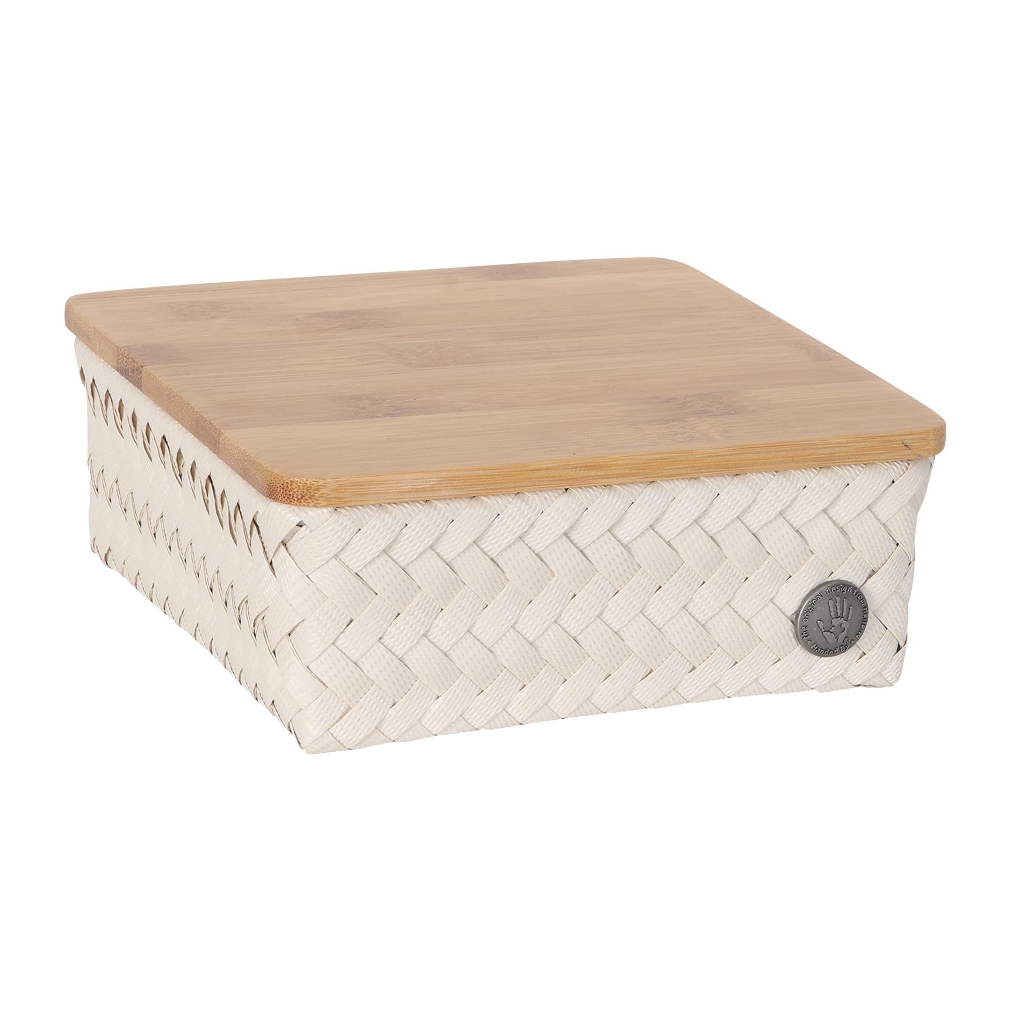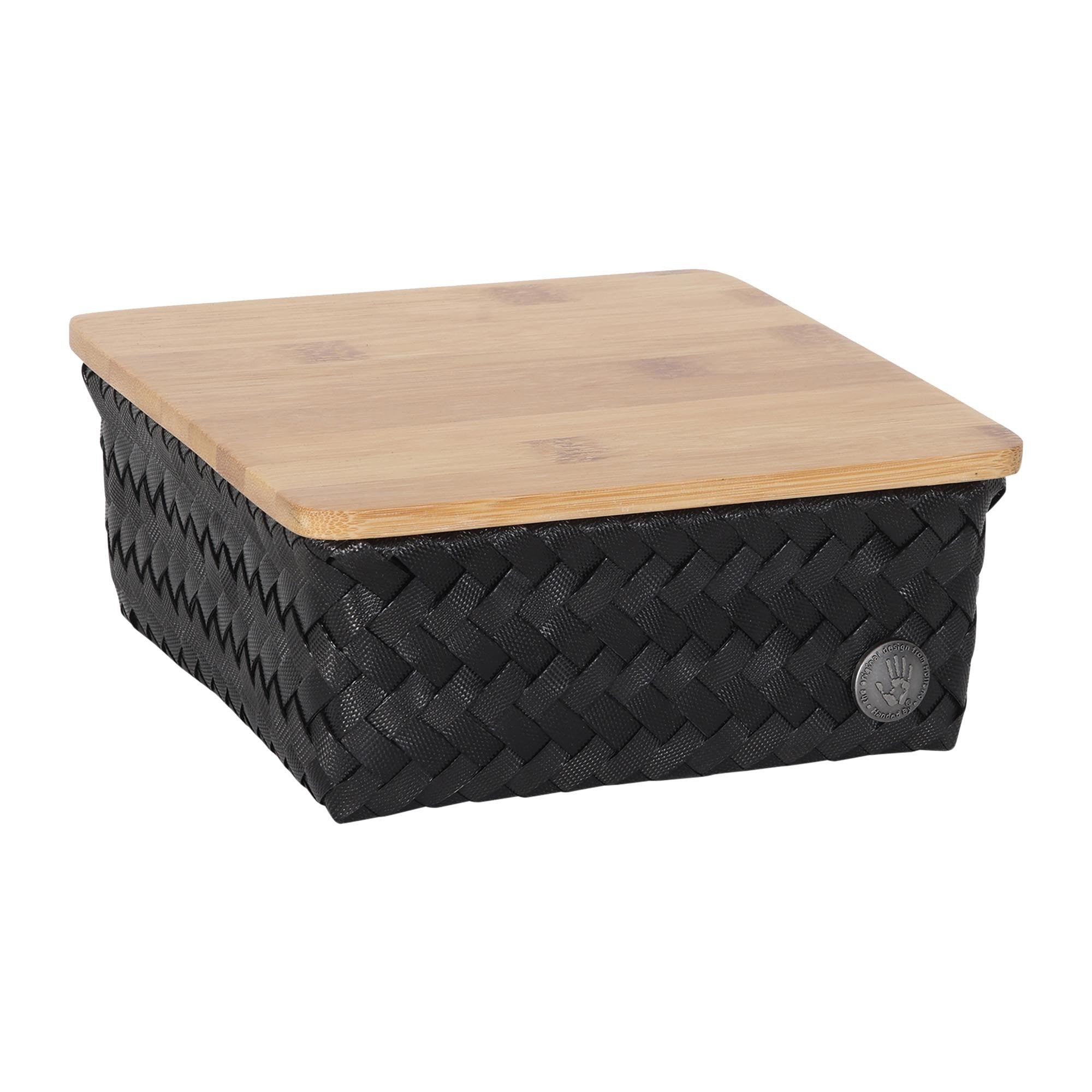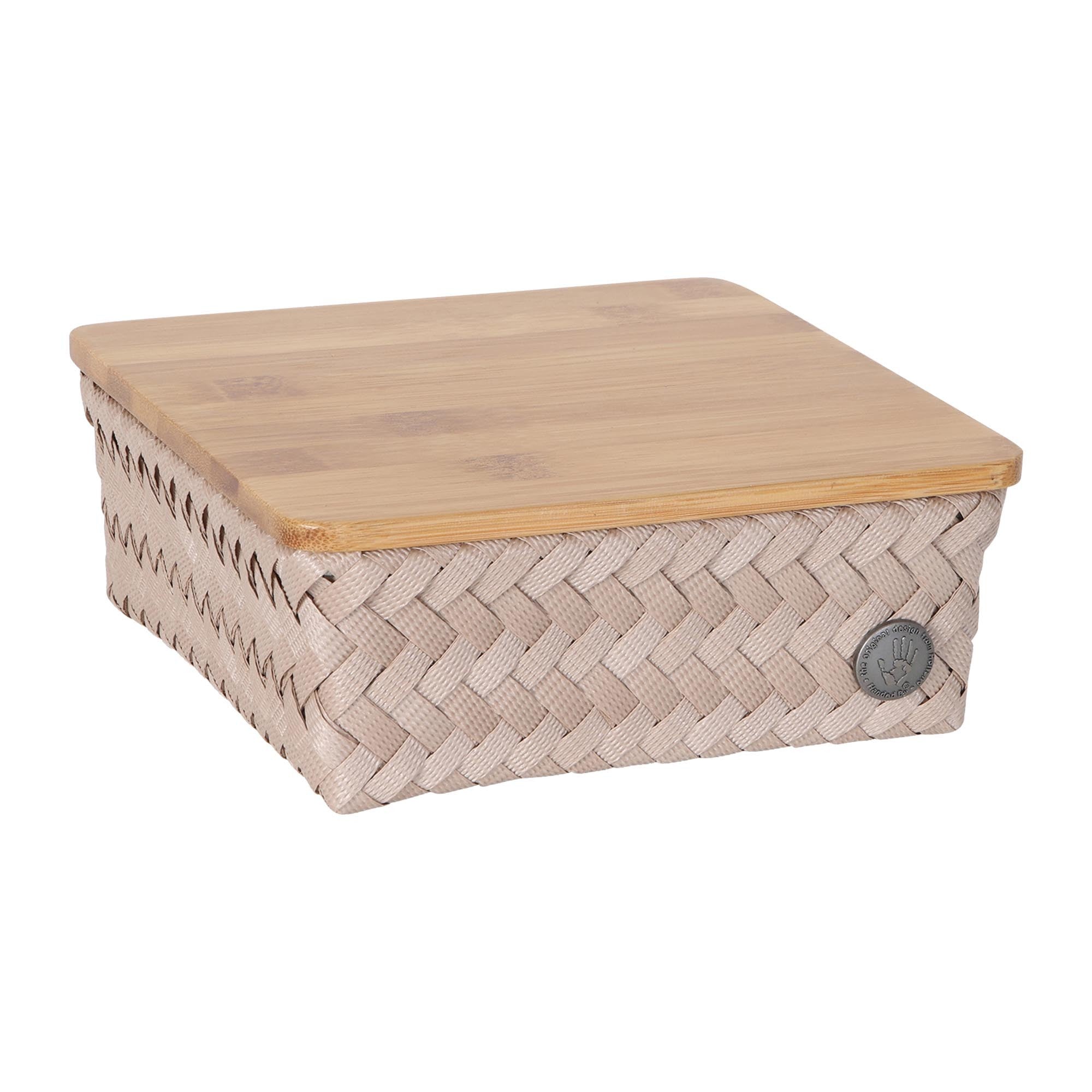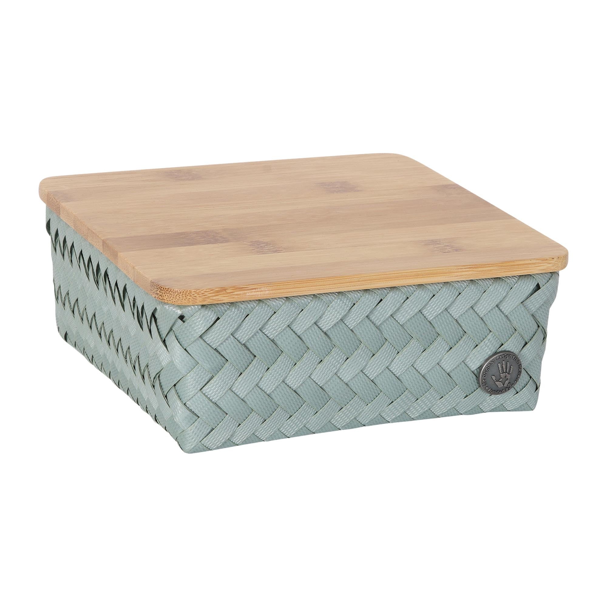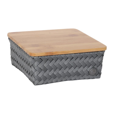 With this square basket of the TOP FIT collection by Handed By, you can use every little corner of your house. This size is perfect for storing notebooks and pens on your desk or for small jars with herbs and bottles in the kitchen. This size combines perfectly with the other FIT baskets by Handed by, inside a drawer, for instance. The lid is made of sustainable bamboo. Braided by hand and containing recycled plastic.