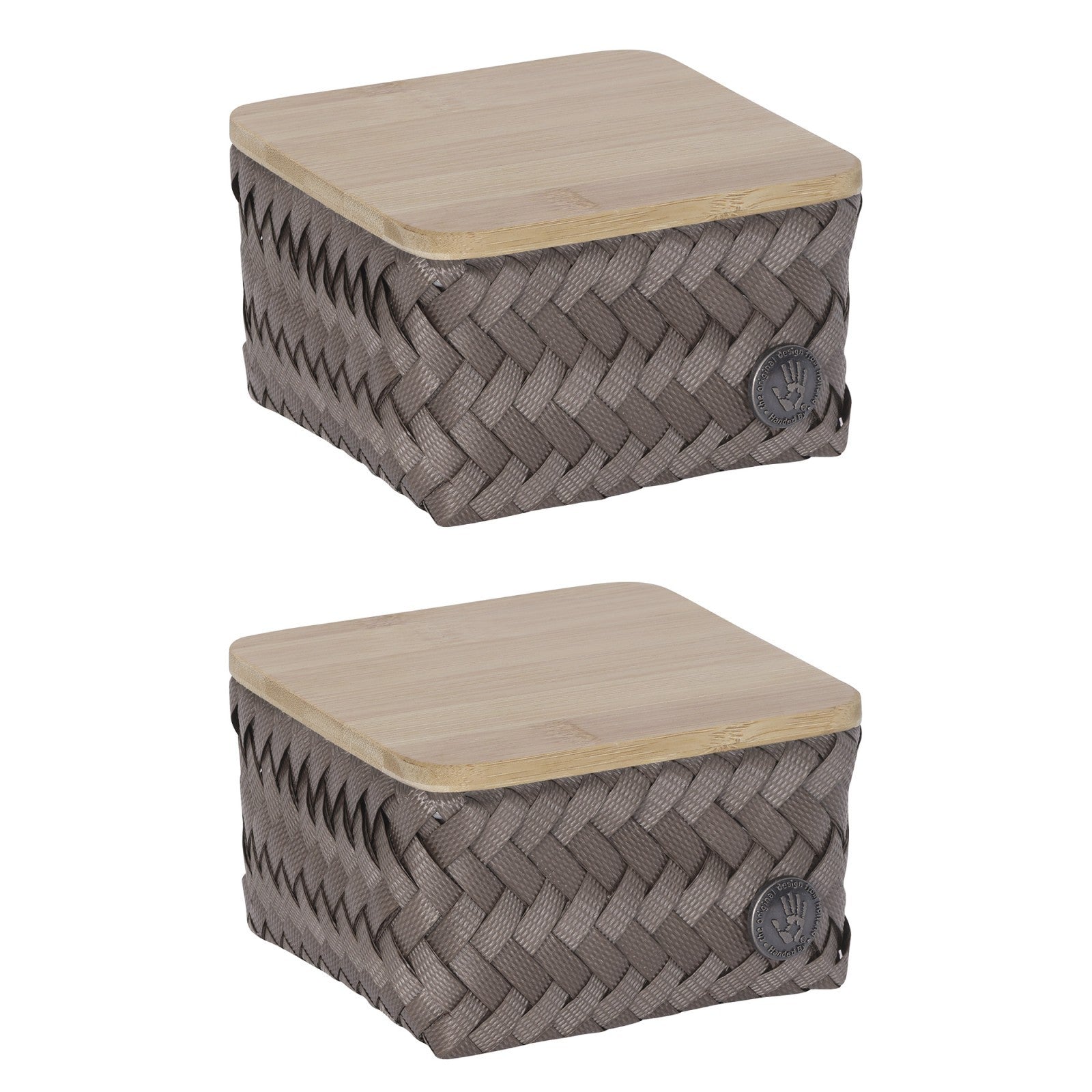 Use the storage basket TOP FIT tiny for the small items on your desk or in the kitchen. Perfect for the keys in the hallway, the soap on the kitchen counter or the milk cups in the drawer. Easy to close with the bamboo lid! Hand-woven and made with recycled plastic. MINIMUM = 2 PCS.