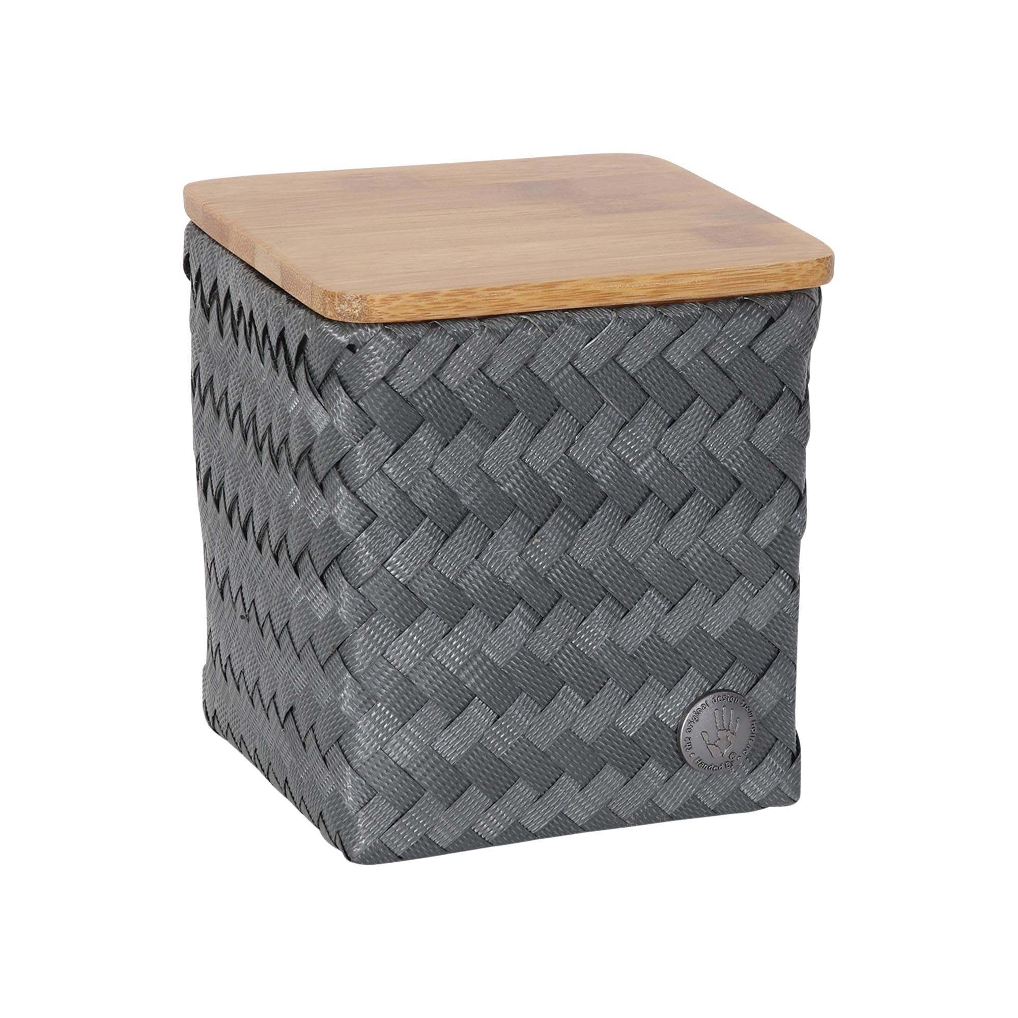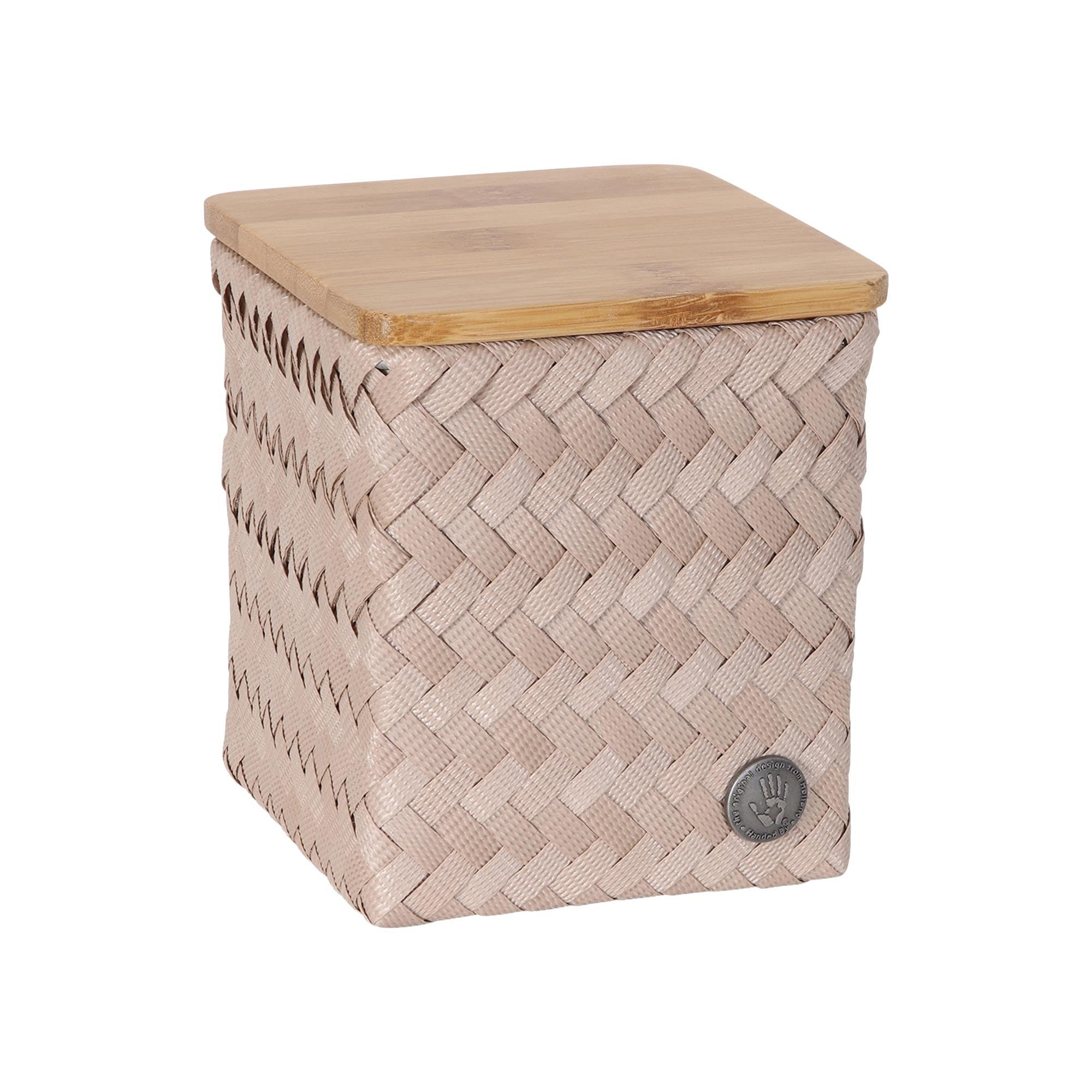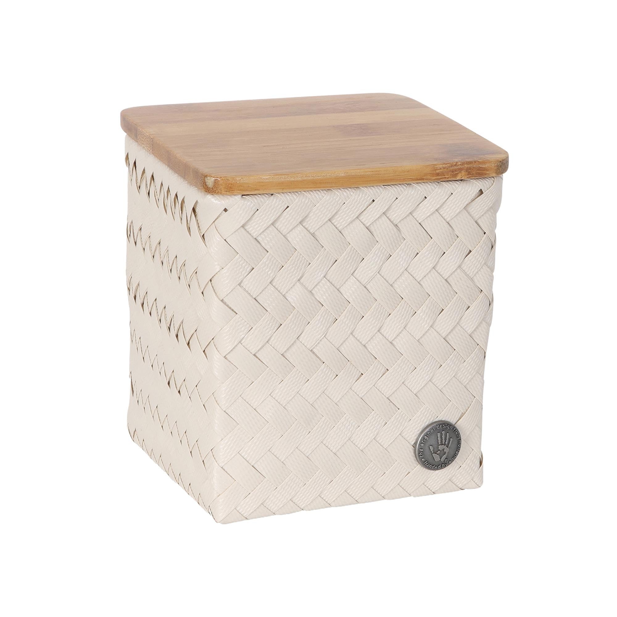 The TOP FIT tiny high storage basket by Handed By is a practical, small storage unit for the baby's room or bathroom, for example. Ideal for on the dresser, or for small items in the toilet, for example. Choose the right colour and immediately brighten up your interior! The basket is practical and stylish, and it has a bamboo lid. Hand-made with recycled plastic.