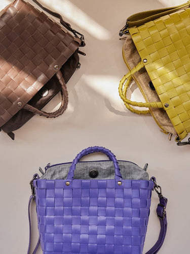 Handed By gibt verwendetem Plastik ein zweites Leben. Wir recyceln Industrieabfälle und nutzen sie zur Herstellung von Bändern, der Basis unserer Körbe und Taschen.