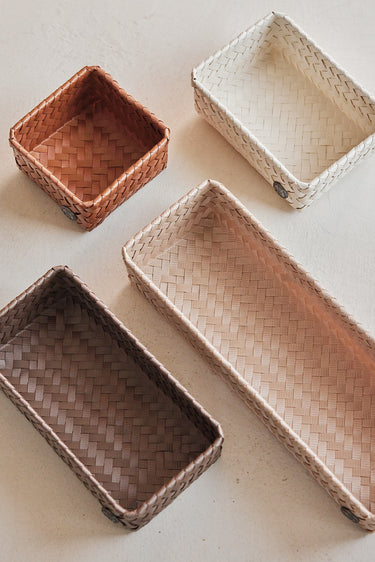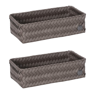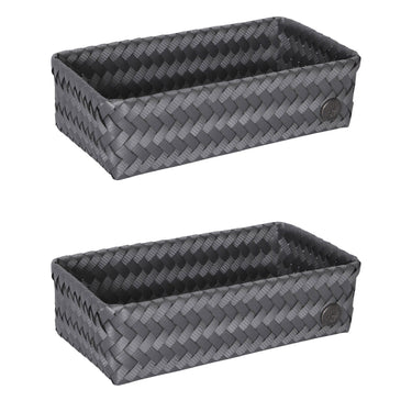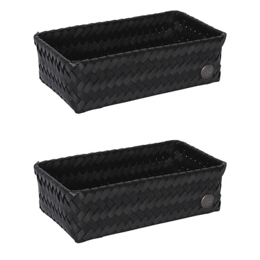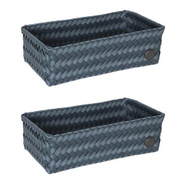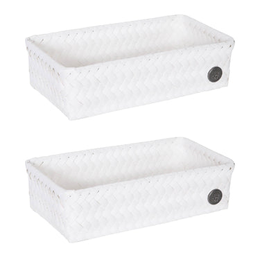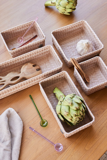 Dieser rechteckige Korb aus der FIT-Kollektion von Handed By ist praktisch überall einsetzbar - für die Oliven- und Seifenflaschen auf der Küchentheke oder zum Beispiel als Ablage für Kugelschreiber und Stifte auf dem Schreibtisch. Der FIT double tiny lässt sich gut mit den anderen FIT-Körben von Handed By kombinieren. Ideal für eine Schublade - kann aber durch das schöne Design auch als stilvoller Aufbewahrungskorb verwendet werden, der sich sehen lassen kann! Von Hand geflochten und aus recyceltem Kunststoff hergestellt. MINDESTBESTELLMENGE = 2 STÜCK.