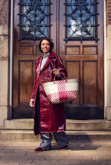Die 'QUINN' Shopper ist mit ihrem großzügigen Format und der stabilen Struktur der perfekte Tasche für jeden Tag. Ideal für die Arbeit, den Einkauf oder einen Tagesausflug. Das grafische Flechtmuster ist inspiriert von dem verspielten Charakter eines Patchworks oder Quilts. Die kurzen Henkel aus PU-Leder verleihen der Tasche einen coolen Touch und sorgen für angenehmen Tragekomfort. Leicht im Gewicht, handgefertigt aus recyceltem Plastik und überraschend geräumig, die QUINN Shopper ist eine zuverlässige Tasche, auf die du zählen kannst!