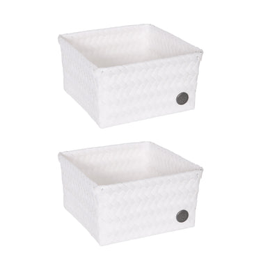 Ce panier carré de la collection FIT de Handed By veille à ce qu’aucune petite place dans la maison soit inutilisée. Pratique pour des blocs-notes et des stylos sur le bureau ou de petits pots à épices et des bouteilles dans la cuisine. À combiner parfaitement avec d’autres paniers FIT de Handed By, dans un tiroir par exemple. Tressé à la main et fabriqué à partir de plastique recyclé. MINIMUM = 2 PIÈCES.