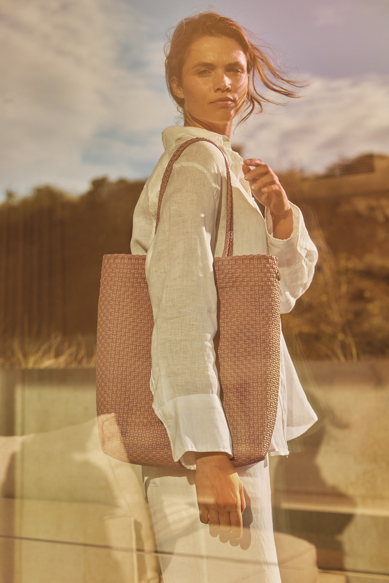 The 'Solo tall', with its contemporary design, is proudly woven in Vietnam. The small strap gives the 'Solo tall' a refined look, while at the same time offering enough space for all your necessities. Whether you're carrying important documents or your laptop, this bag is practical and perfect for everyday use! The handles make it easy to carry the bag comfortably over the shoulder. Hand-braided and made from recycled plastic. Also available in a bigger size.