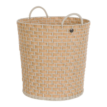 Discover WILLOW, a basket collection featuring a new weaving technique that creates a calm and refined look. These baskets are made from tube (polyethylene) and recycled plastic. Available in a natural shade and solid colors: tough and trendy. WILLOW is one of the few fully round collections by Handed By. Thanks to the handles, they are easy to lift. Perfect for the living room, children’s room or office. Size L is ideal for larger plants, throws or laundry; a real eye-catcher in your interior.